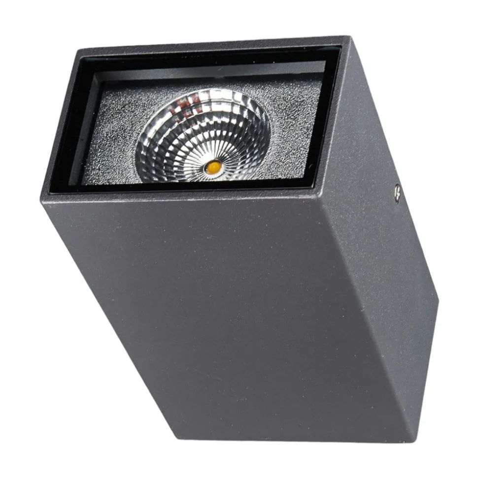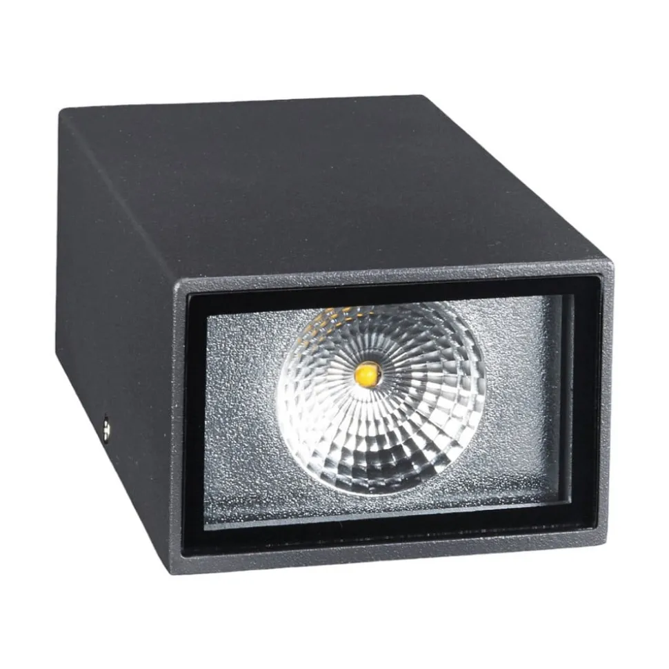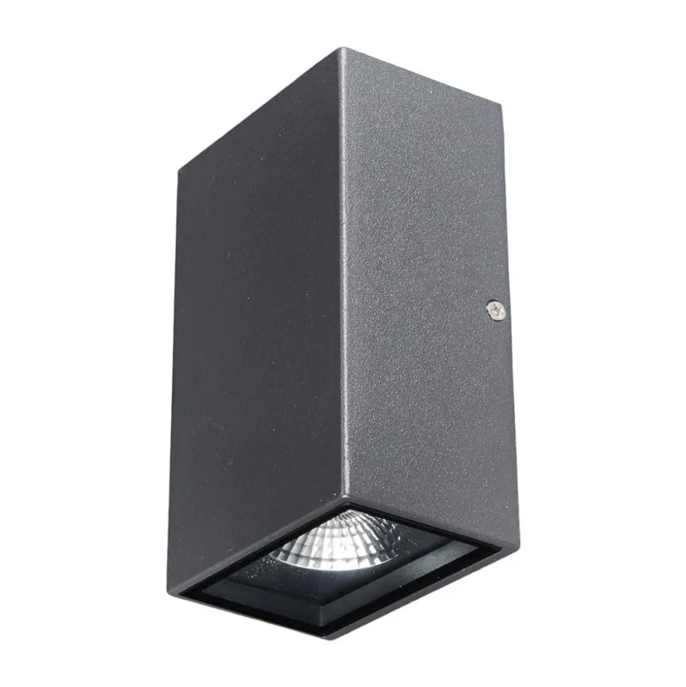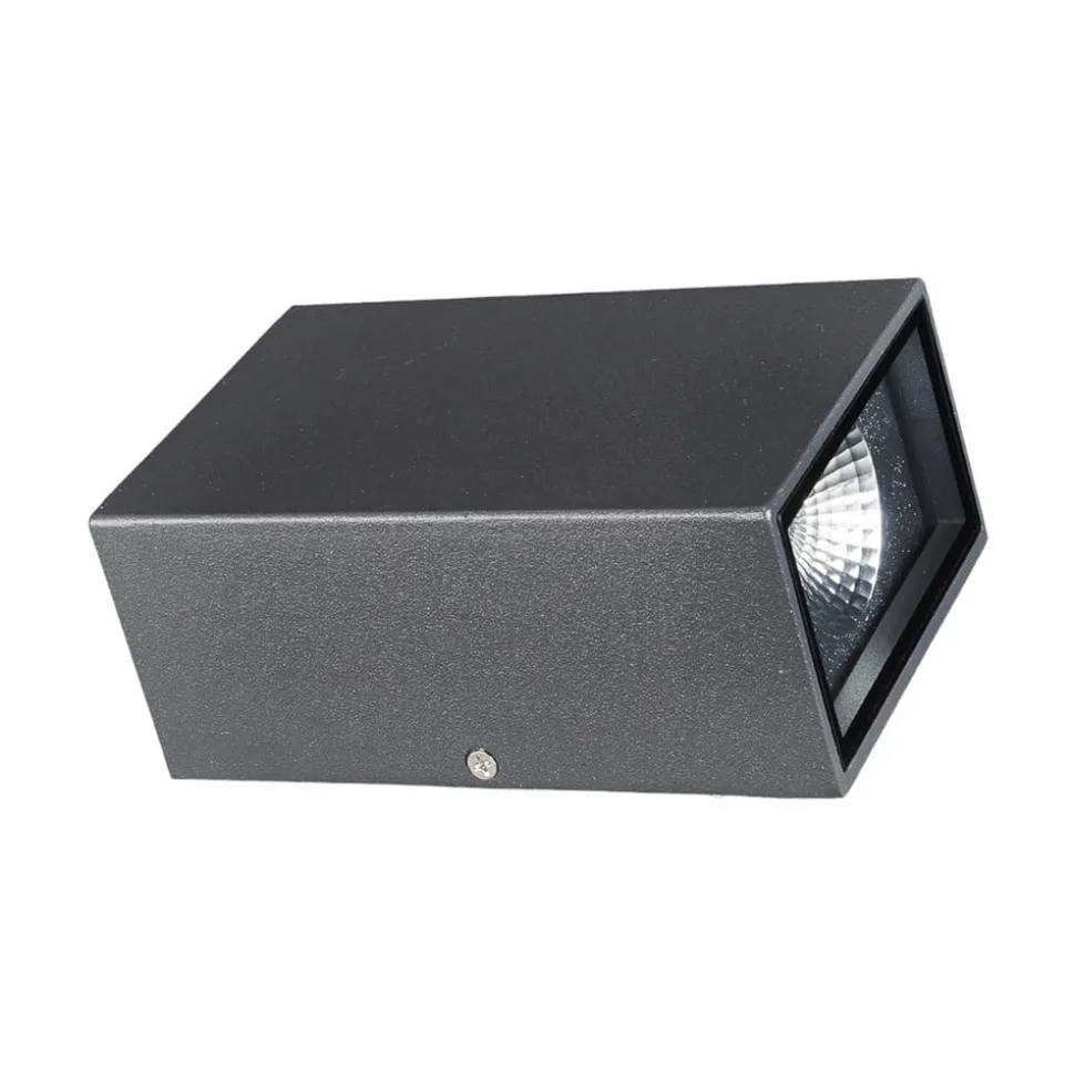 Eenvoudig vormgegeven LED buiten wandlamp Jale van aluminium met Bridgelux COB LED’s, IP54 De rechthoekige vorm van deze LED wandlamp is zo klassiek dat hij lang plezier belooft en op verschillende manieren kan worden gebruikt. Jale straalt zowel naar boven als naar beneden licht uit, maar niet direct naar voren, zodat er geen onaangename schittering is. De hoekige behuizing is gemaakt van aluminium en de lamp wordt beschermd door een kap van gehard glas. Jale schijnt in een warmwitte lichtkleur. Een prachtige LED buiten wandlamp die ervoor zorgt dat niemand ’s nachts in het donker hoeft te staan!