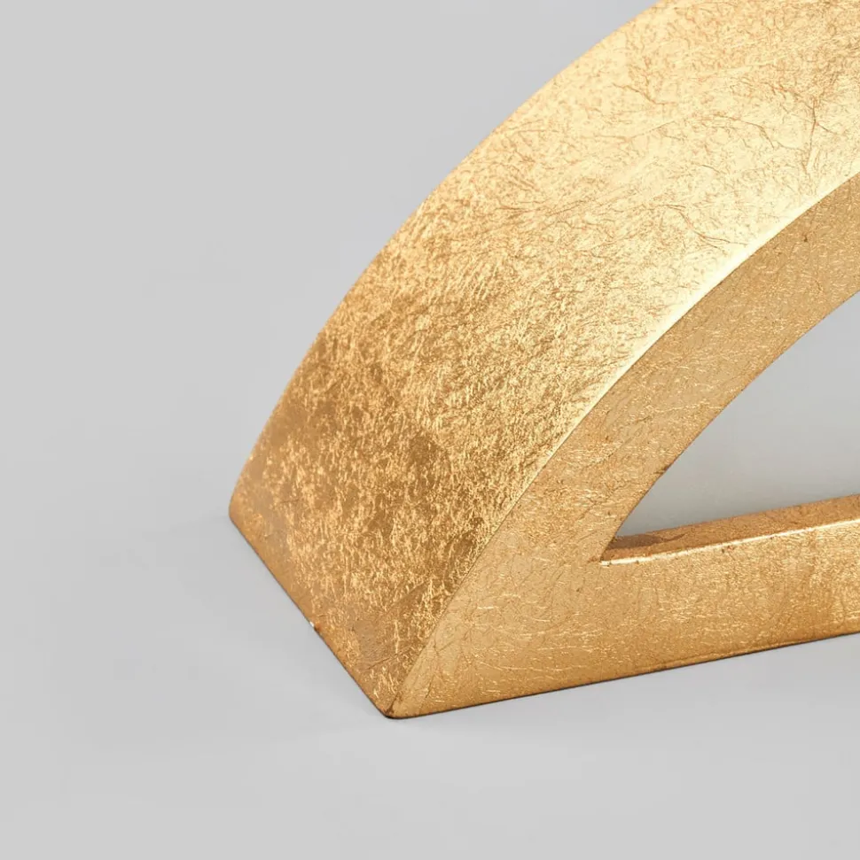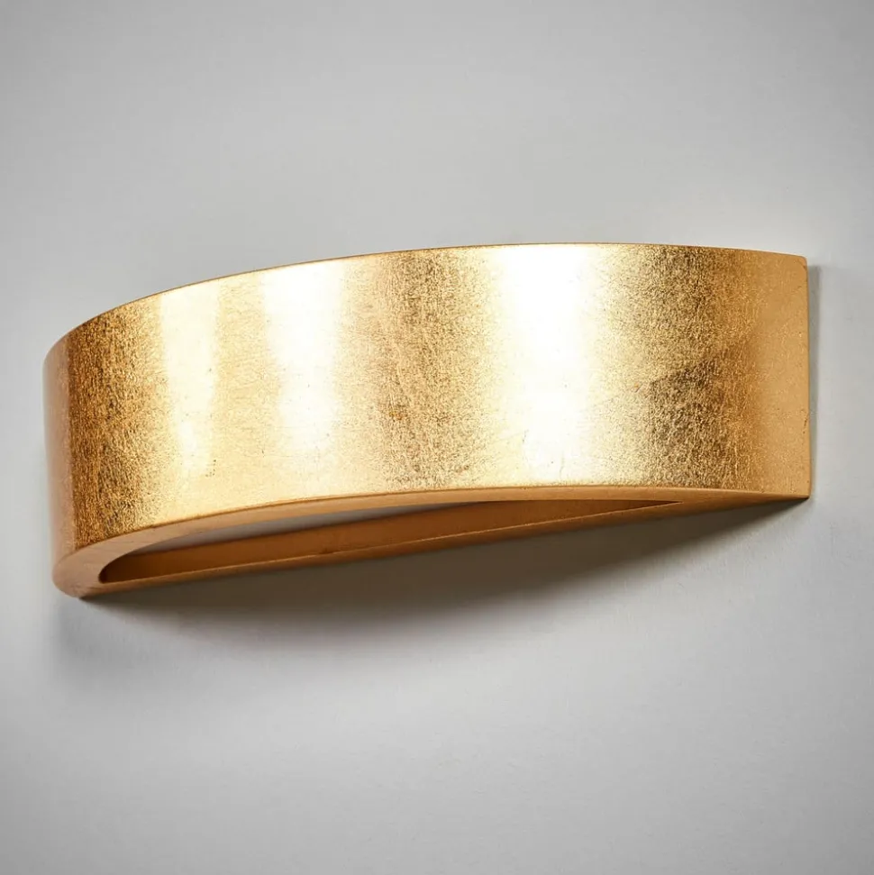 Als een gebogen beugel strekt wandlamp Jasin de kamer in en geeft zowel licht omhoog als omlaag. De resulterende lichtval biedt veel comfort en nodigt u uit om te ontspannen en tot rust komen. Een ander belangrijk kenmerk is het oppervlak, omdat het gips lichaam van de Jasin volledig is bedekt met bladgoud, wat zorgt voor een verfijnde look die niet plat en gelijkmatig is, maar prachtige tinten heeft.