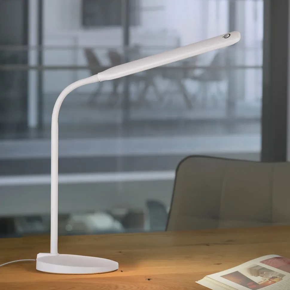 Elly LED bureaulamp met CCT-functie en touchdimmer De Elly LED bureaulamp met lange lampenkop, die verstelbaar is dankzij het flexibele gedeelte in het frame, is perfect voor op het bureau en biedt flexibele verlichting dankzij de CCT-functie (selecteerbare lichtkleur) en een geïntegreerde touchdimmer. Met de CCT-functie kan de lichtkleur worden geselecteerd van warmwit tot universeel wit licht.