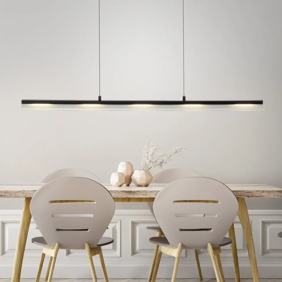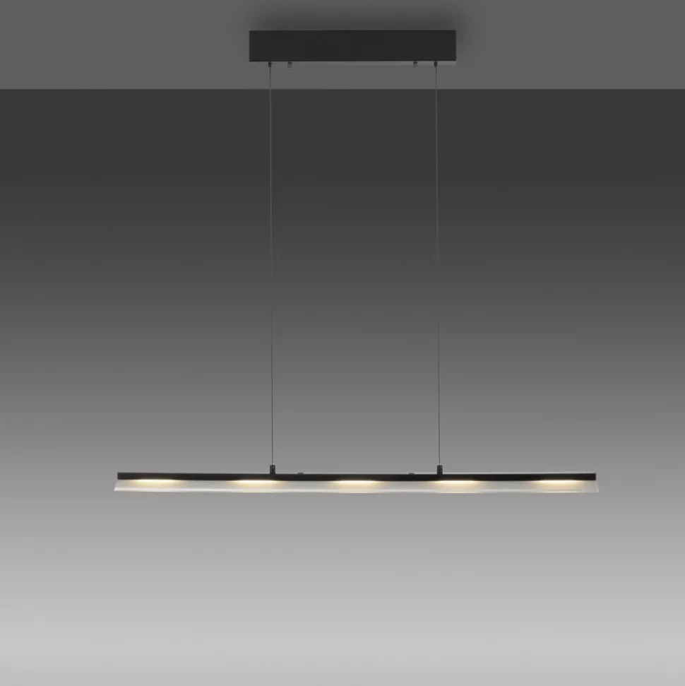 Hanglamp Nele LED, dimbaar via wandschakelaar De zwarte hanglamp Nele LED is perfect voor het verlichten van de eettafel of het kookeiland. In het armatuur is een LED-printplaat met een warmwitte lichtkleur geïnstalleerd, die een effectieve neerwaartse verlichting uitstraalt via de afzonderlijke lichtuitgangen en de matglazen afdekking. De hanglamp met filigraan afhanghoogte kan via de lichtschakelaar worden gedimd zonder extra installatiewerk. De lamp kan worden gedimd tot volle lichtsterkte, 50% lichtsterkte of 12% lichtsterkte. De keuze wordt gemaakt door meerdere keren op de lichtschakelaar te drukken.