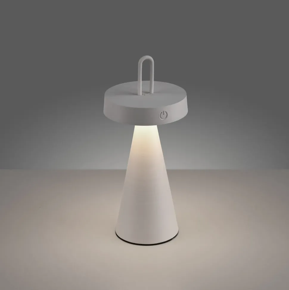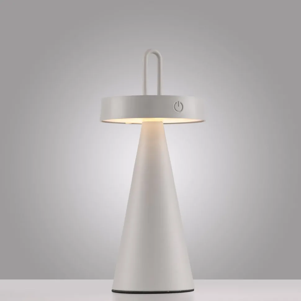 Alwa LED tafellamp – mobiele extra lichtbron voor binnen en buiten Het moderne ontwerp van de Alwa LED tafellamp zorgt voor een aangename sfeerverlichting in woonkamers, patio’s en tuinen. De spatbestendige tafellamp heeft ook een oplaadbare batterij waardoor hij ook zonder externe stroombronnen kan worden gebruikt. De metalen en kunststof structuur is verdeeld in een conische voet en een ronde kop aan de onderkant waarvan het licht wordt uitgestraald. Het licht wordt geschakeld en gedimd met de knop aan de zijkant van de kop – Beschermingsgraad: IP44 – Oplaadtijd: 4 uur – Brandduur op hoge lichtsterkte: 7 uur