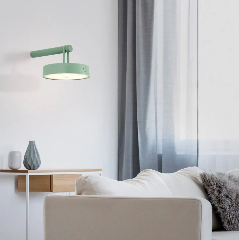Ronde LED wandlamp Arma met oplaadbare batterij – veelzijdige plaatsing De LED wandlamp Arma is een modern element voor extra verlichting – in de woonkamer, badkamer of op het terras/veranda. De ronde kop is uitgerust met een lichtuitgang aan de onderkant, terwijl de bovenkant een handvat heeft om op te hangen. Deze kan worden opgehangen aan de meegeleverde muurbeugel of aan bijvoorbeeld een haak. Aan de zijkant van de kop zit een drukknop voor schakelen en dimmen. Dankzij de oplaadbare batterij is er geen vaste stroomaansluiting nodig – Beschermingsgraad: IP44 – Oplaadtijd: 4 uur – Brandduur bij hoge lichtsterkte: 7 uur