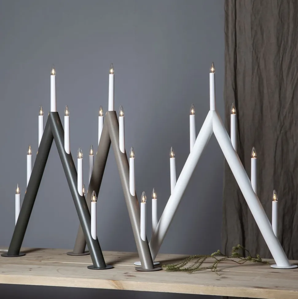 Modieuze kandelaar Circum – pointed Form Het ontwerp van de houten kandelaar Circum kan als bijna puristisch worden omschreven. Het houten frame loopt spits toe en de zeven kaarslichtjes zijn gelijkmatig verdeeld. Het is precies deze eenvoud die Circum zo’n blikvanger maakt. De schakelaar is geïntegreerd in de voedingskabel – inbegrepen: Lamp incl. reservelampje