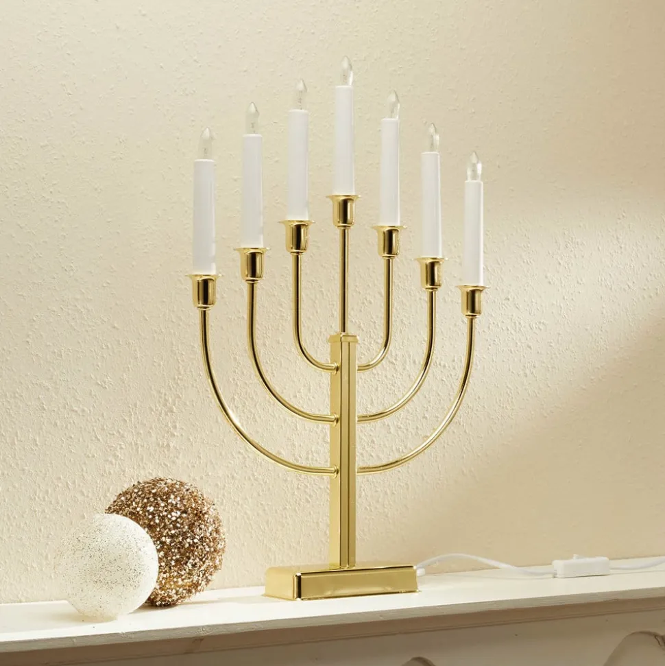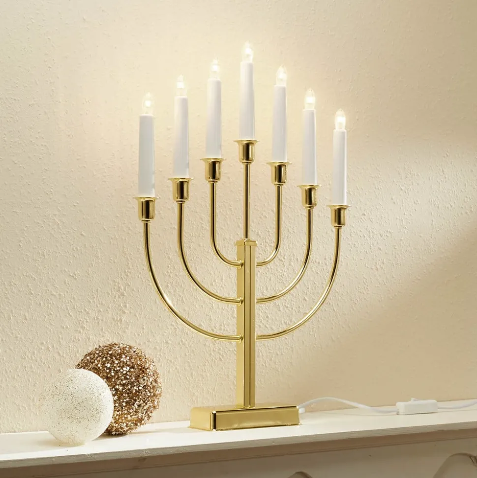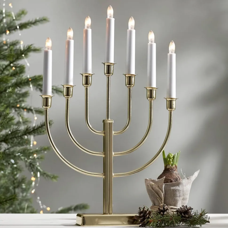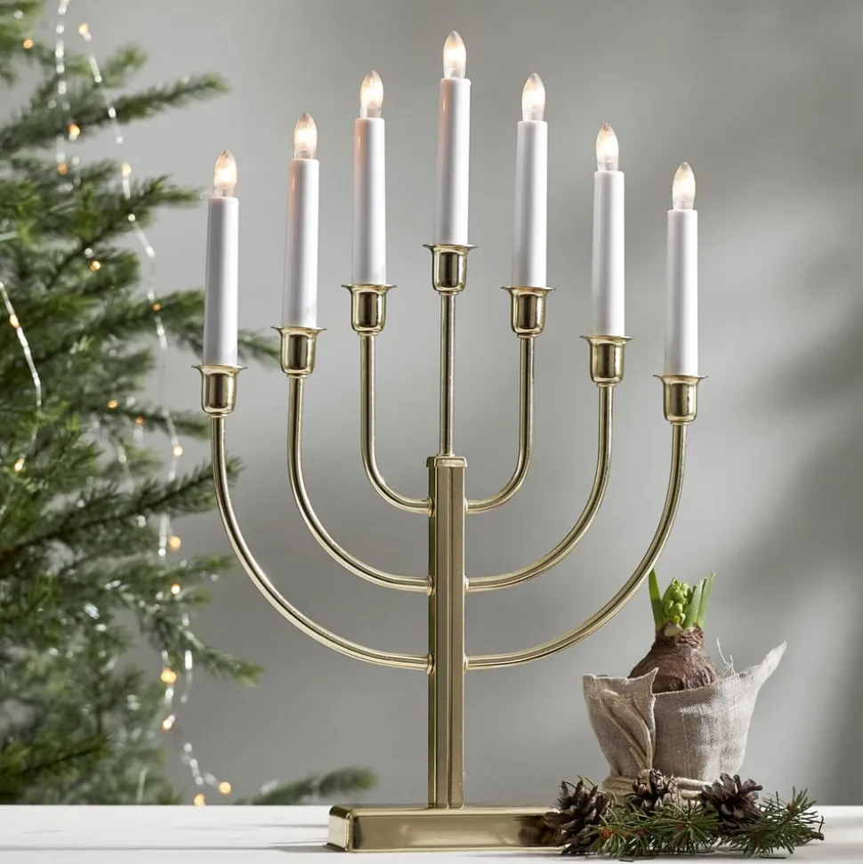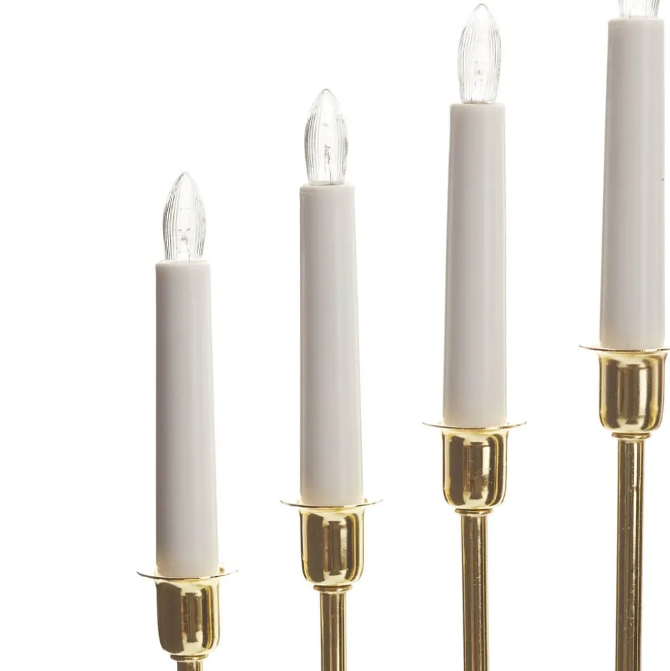 Stijlvolle kandelaar Kristina van messing – een prachtige kerstdecoratie Met deze kandelaar creëer je een elegante feestelijke sfeer. Zo worden de mooiste feestdagen een echt hoogtepunt. Met zeven kandelaars zorgt Kristina voor een sfeervolle verlichting die accenten zet. Voorzien van schakelaar. Lamp: 7 x 3 W E10 – Stekkerkabel: 1,8 m