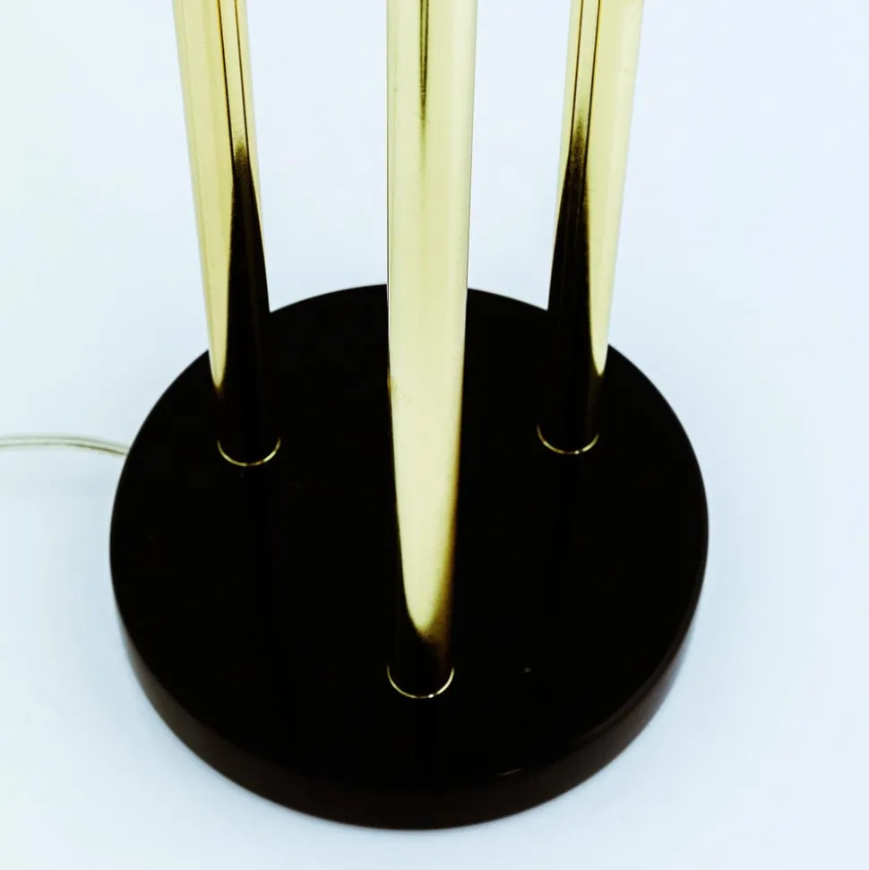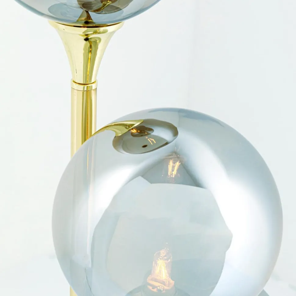 3-lamps vloerlamp Al Capone Tre gemaakt van hoogwaardige materialen De vloerlamp Al Capone Tre ziet er zeer elegant en aantrekkelijk uit, zelfs als hij is uitgeschakeld. Dit maakt hem ook bijzonder geschikt als decoratief element. De ronde, zwarte, stabiele marmeren basis vormt de basis en zorgt voor stabiliteit. Er komen in totaal drie stalen staven uit, die zijn afgewerkt in een glanzende gouden kleur. De staven hebben verschillende lengtes, waardoor het armatuur een individuele en harmonieuze uitstraling heeft, met aan elk uiteinde de G9 basis. Deze wordt omringd door een lichtgekleurde glazen bol die direct zicht biedt op de lamp. Het glas creëert een lichteffect over het hele oppervlak, waardoor het ongehinderd in alle richtingen van de kamer kan schijnen.