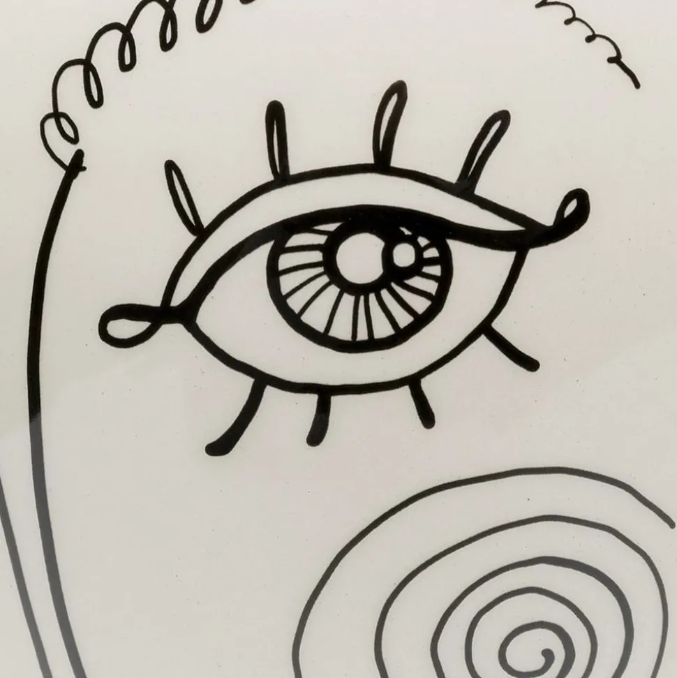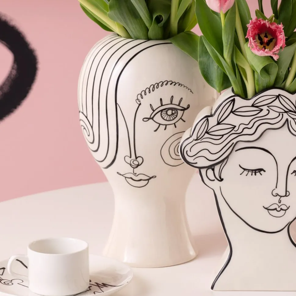 Favola Lady vaas van keramiek, beschilderd De Favola Lady vaas is een ongewone en stijlvolle vaas die meteen in het oog springt in elke kamer. De vaas is gemaakt van keramiek met een glanzend glazuur en is robuust en duurzaam. Elke vaas is uniek dankzij de handgeschilderde zwarte contouren die het gezicht voorstellen en het ontwerp net dat beetje extra geven. Als decoratief element op een bijzettafel, als tafeldecoratie of als onderdeel van een bloemstuk – de Favola Lady vaas past perfect bij andere designmeubelen en -accessoires en voegt een vleugje exclusiviteit toe aan elke kamer.