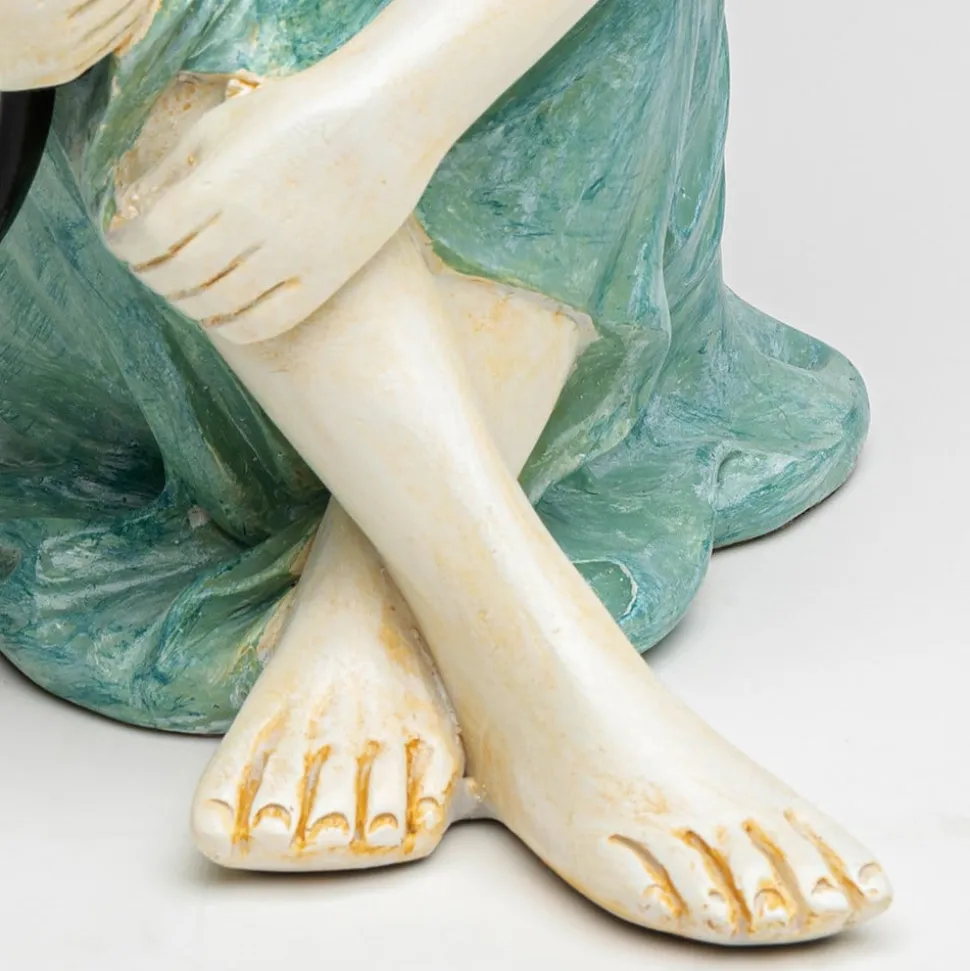 Tafellamp Girl Rabbit met E14 fittingOngewoon en extravagant zoals alle lampen van KARE, presenteert de tafellamp Girl Rabbit zich als een bijzondere lichtbron voor de woon- of slaapkamer. Een meisje zit met gekruiste benen in een delicate groene jurk en draagt het hoofd van een konijn. In haar ene hand houdt ze de E14 fitting vast. De figuur is gemaakt van gelakt polyresin (kunsthars).