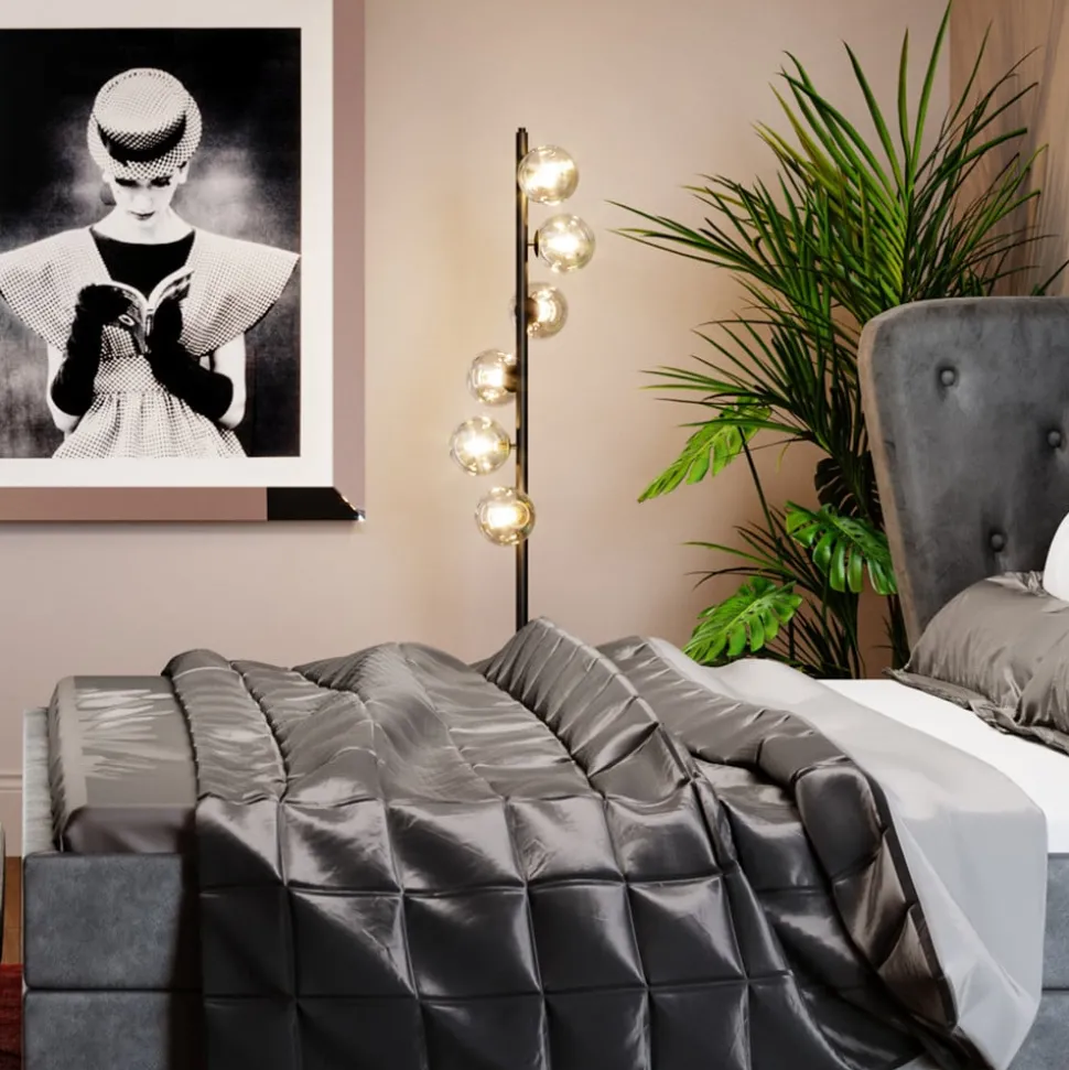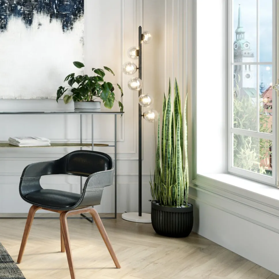 Kare Scala Balls vloerlamp, 6-lamps, marmeren voet, grijs