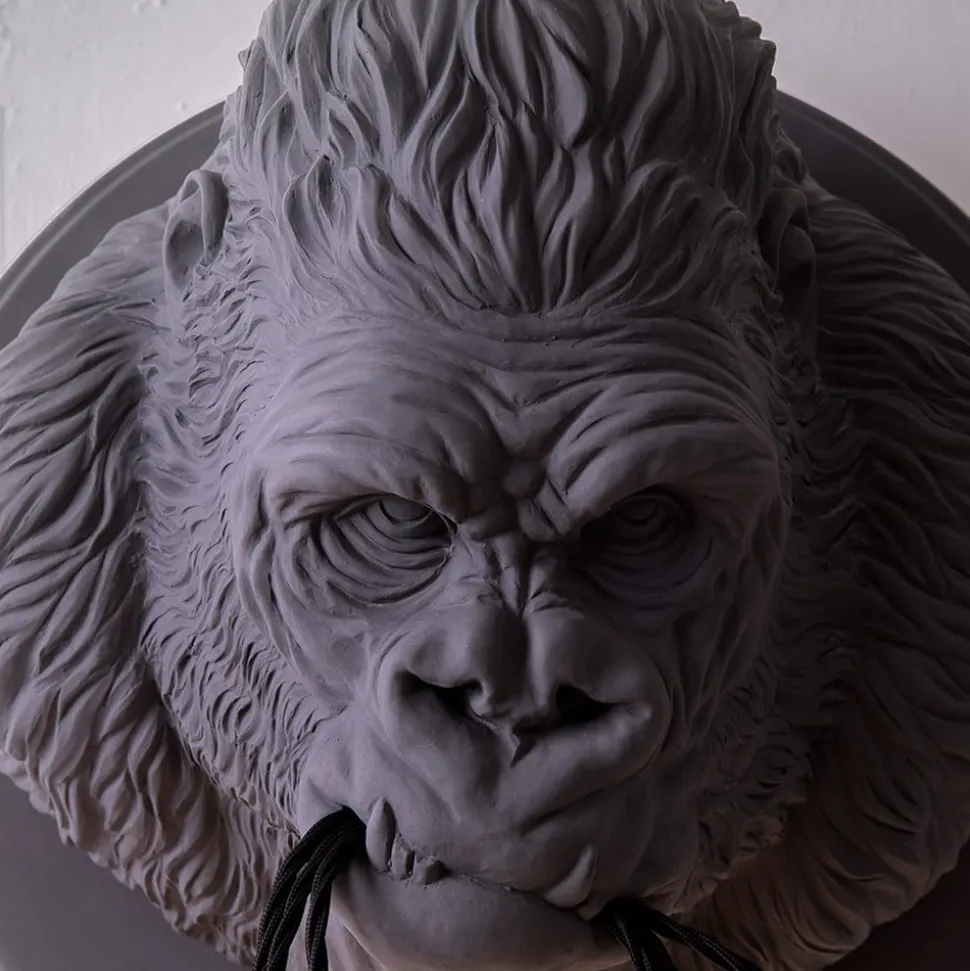 Gipsen gorillahoofd: Designer wandlamp Ugo Rilla