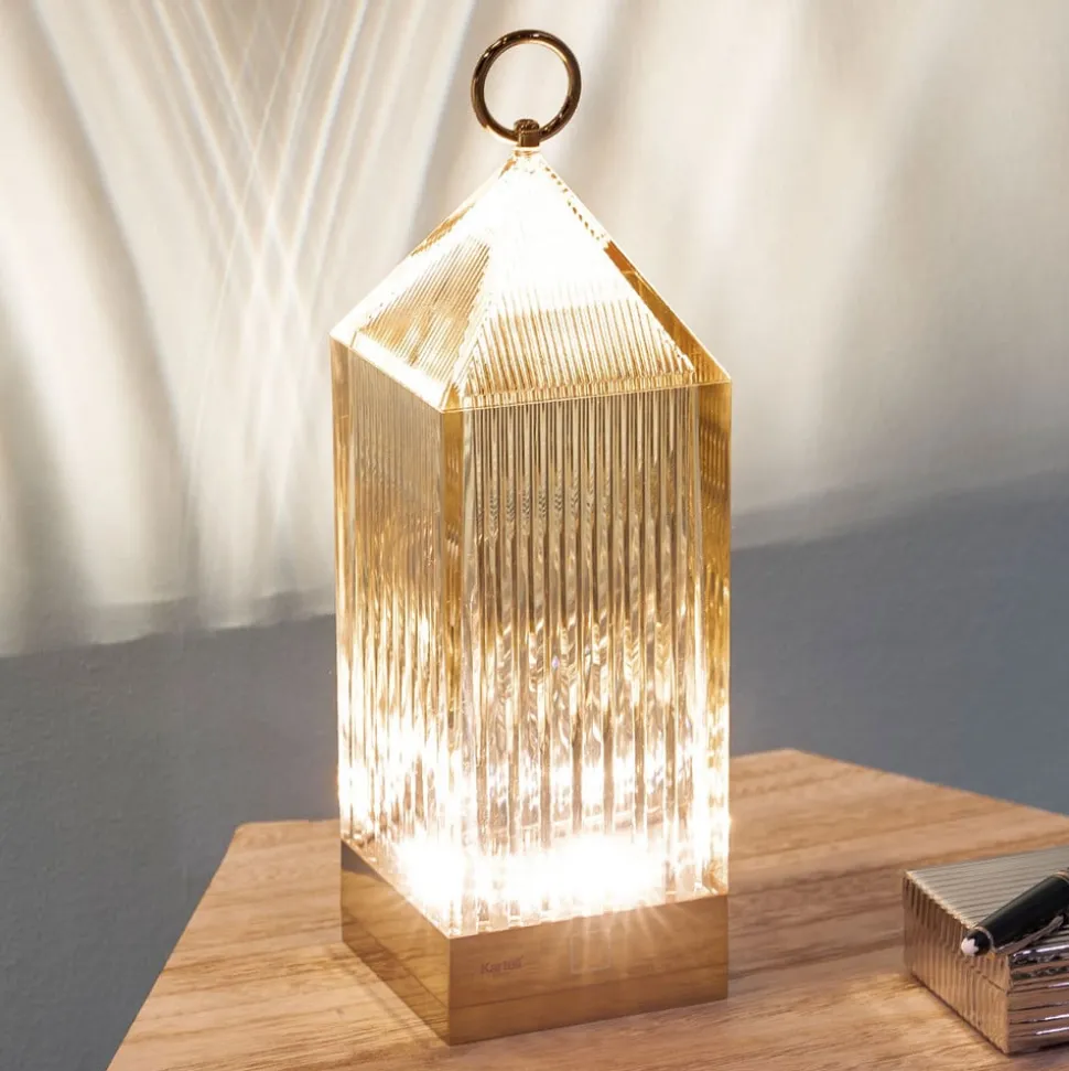 De Italiaanse architect en ontwerper Fabio Novembre ontwierp deze draagbare LED-tafellamp in de vorm van een oude, klassieke lantaarn. Het speciale ding hier: In een poging de lantaarn zo minimalistisch mogelijk uit te rusten, is de lichtbron alleen in de onderste voet van de lamp gemonteerd. Om het licht helder genoeg te laten schijnen, komt het speciale oppervlak van de lantaarn in het spel. De facetten in het lamphuis zorgen ervoor dat de draagbare lantaarn voldoende licht geeft. Het hoogtepunt van de universeel inzetbare lamp: het laadstation, waarop de Lantern LED tafellamp kan worden opgeladen.