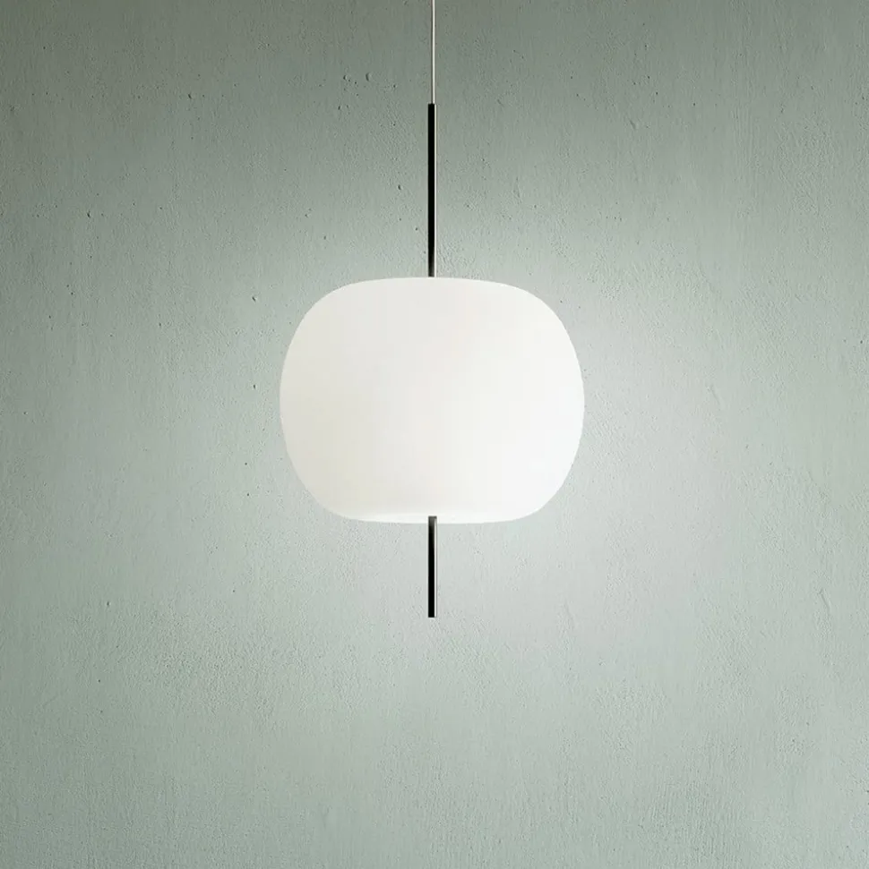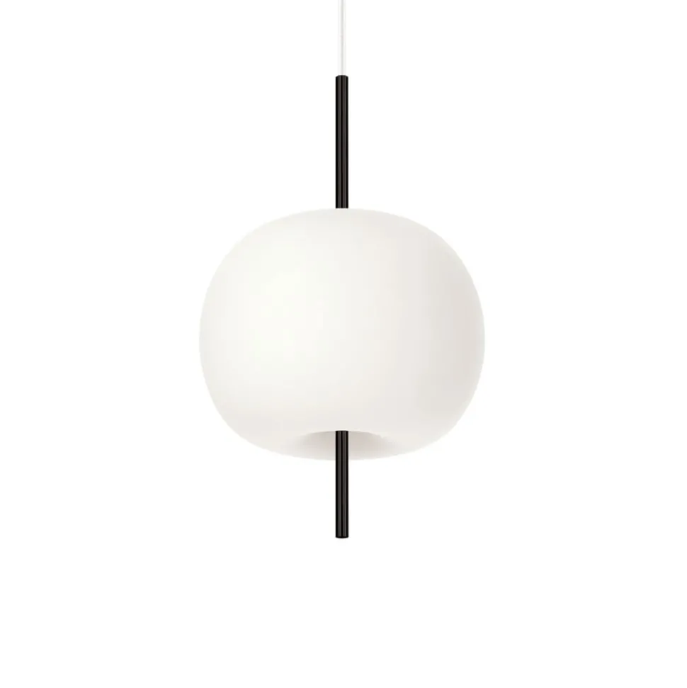 De hanglamp Kushi is gemaakt van mondgeblazen, tweelaags glas en valt op door zijn elegante schoonheid en tijdloze uitstraling. Kushi betekent in het Japans ‘spies’, wat een goede omschrijving is voor de dunne metalen staaf die door de afgeronde glazen behuizing loopt. De staaf steekt aan de onder- en bovenkant uit het lichaam en loopt door in de transparante kabel waaraan de lamp aan het plafond hangt. Het licht wordt diffuus verspreid en verspreidt zich door de hele ruimte. Kushi is daarom ideaal voor het verlichten van eettafels of balies en staat zowel in privé- als openbare ruimtes mooi.