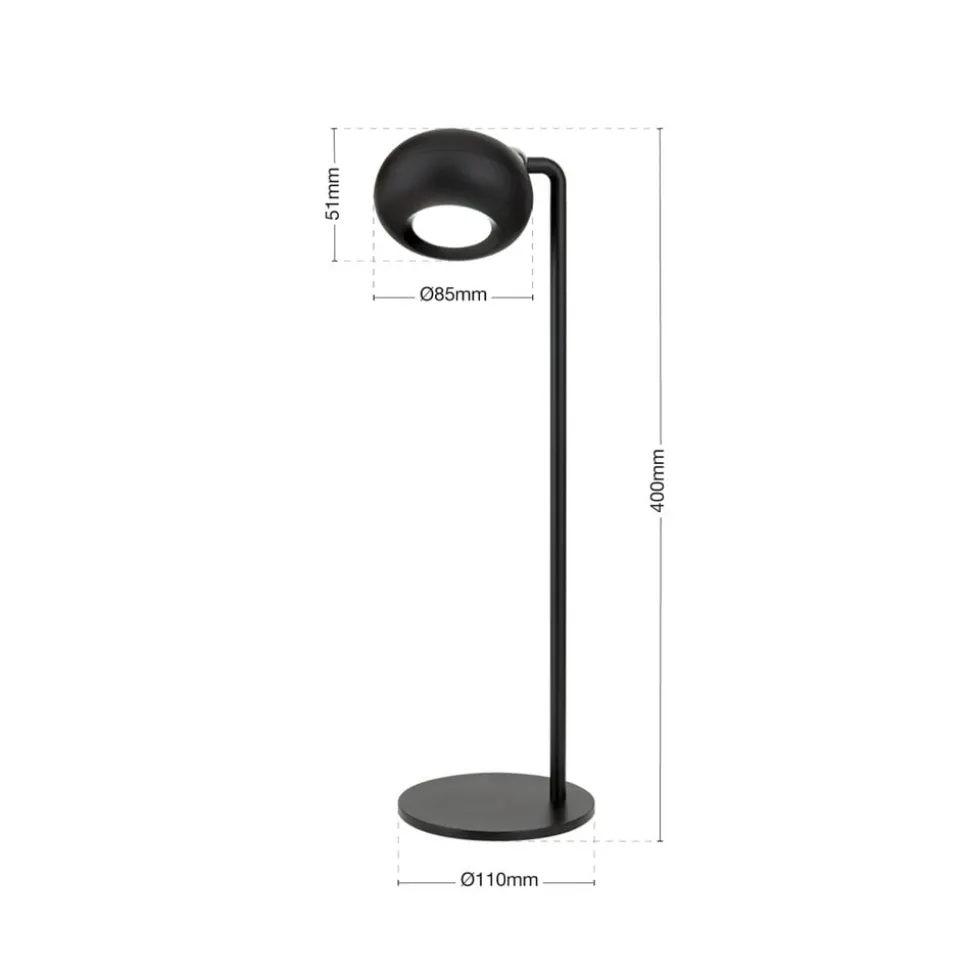 Kerby LED tafellamp, oplaadbaar, zwart, hoogte 40 cm, aluminium