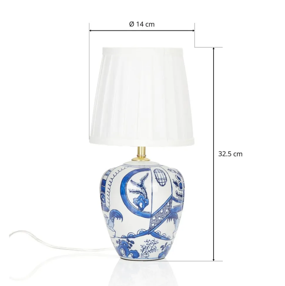 Tafellamp Göteborg staat bijzonder goed als decoratief object in klassiek ingerichte kamers, waar hij idealiter wordt geplaatst op de vensterbank of een dressoir. Het hoogtepunt van deze lamp is ongetwijfeld de bolle voet met karakteristieke decoratie. Deze wordt aangevuld met een witte geplooide kap die voor aangename extra verlichting zorgt.