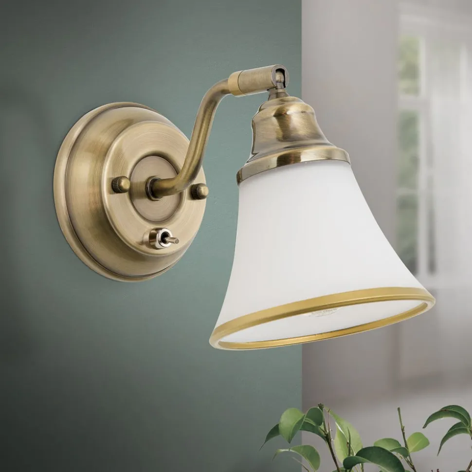 Wandlamp TILDA presenteert zich in een zeer klassieke stijl en vertoont door de oudmessing-look nostalgische kenmerken.