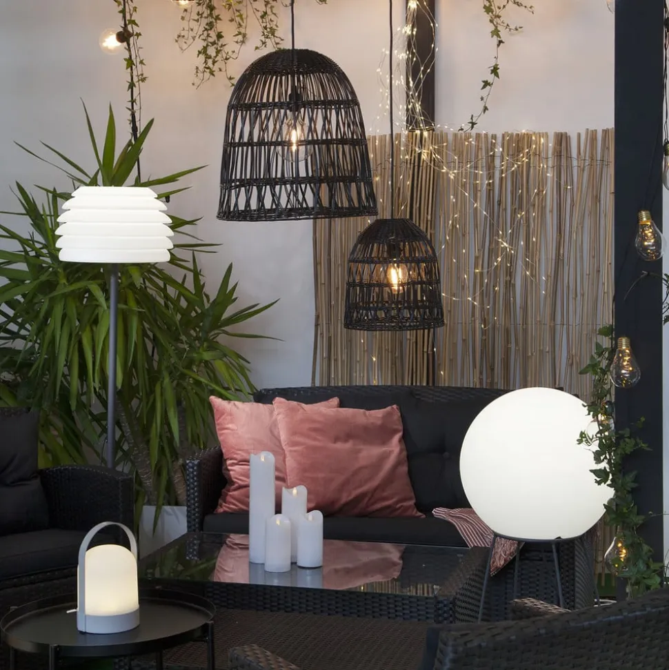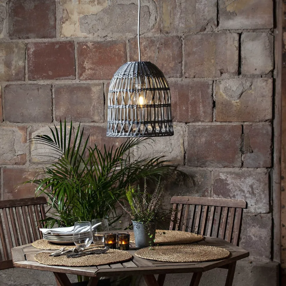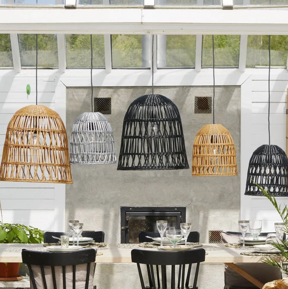 De Knute kap is een korfvormig vlechtwerk van poly-rattan en is geschikt voor binnen- en buitengebruik. Gecombineerd met een kabel met fitting en een mooie filament-lamp (beide niet inbegrepen), is het resultaat hier een zeer flexibele combinatie van hanglamp die zowel het terras als de woonkamer kan verrijken. Het materiaal is weerbestendig en zorgt ook voor een interessant schaduwpatroon als het licht wordt ingeschakeld.