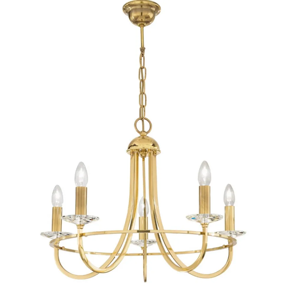 5-lamps kroonluchter Imperial – glanzend messing en kristalglas