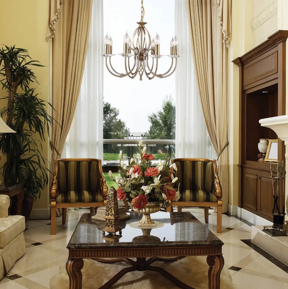Achtvlamige kroonluchter Aegean – kan ook als plafondkroonluchter worden gemonteerd