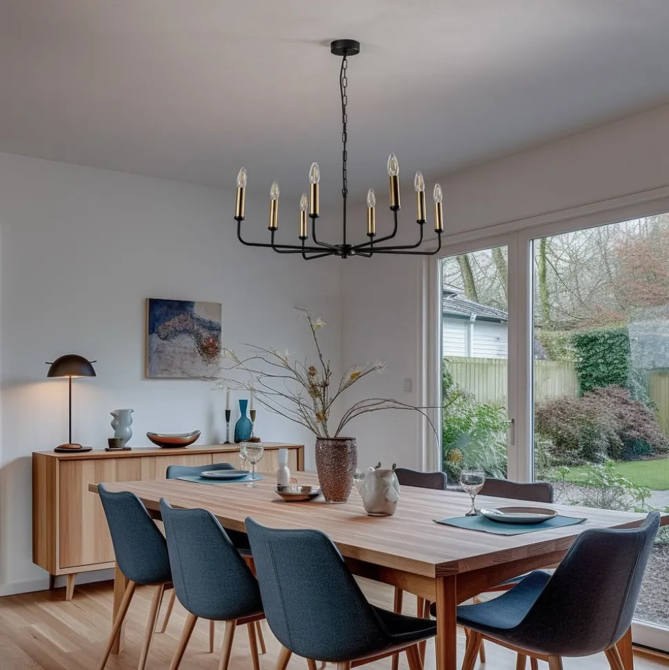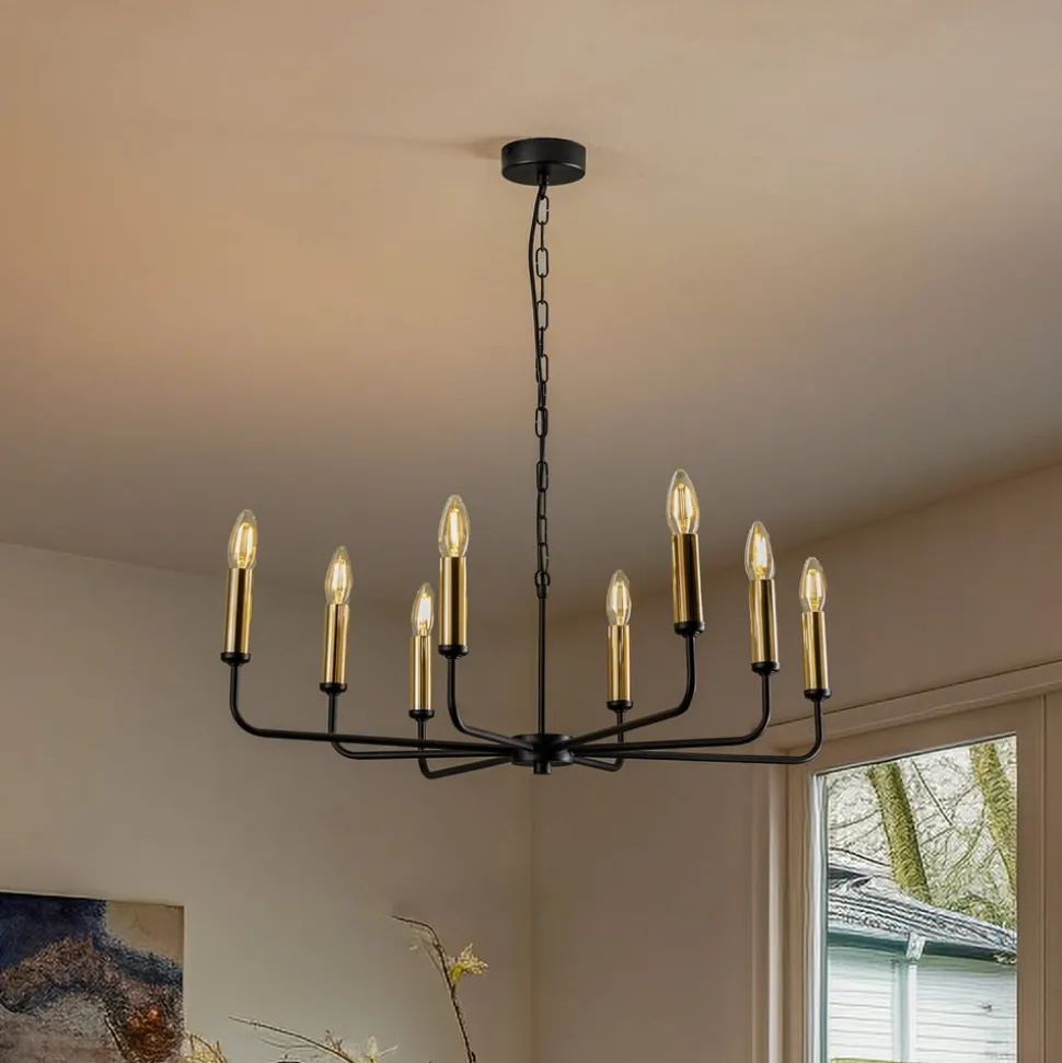 De kroonluchter Ampli in zwart en goud combineert een modern design met een hoogwaardige afwerking van staal. Met zijn acht lampen zet hij stijlvolle accenten in elke ruimte, of dat nu in de woonkamer, de keuken of de eetkamer is. De combinatie van een zwarte en gouden afwerking geeft de kroonluchter een tijdloze elegantie die harmonieus past in verschillende interieurstijlen.