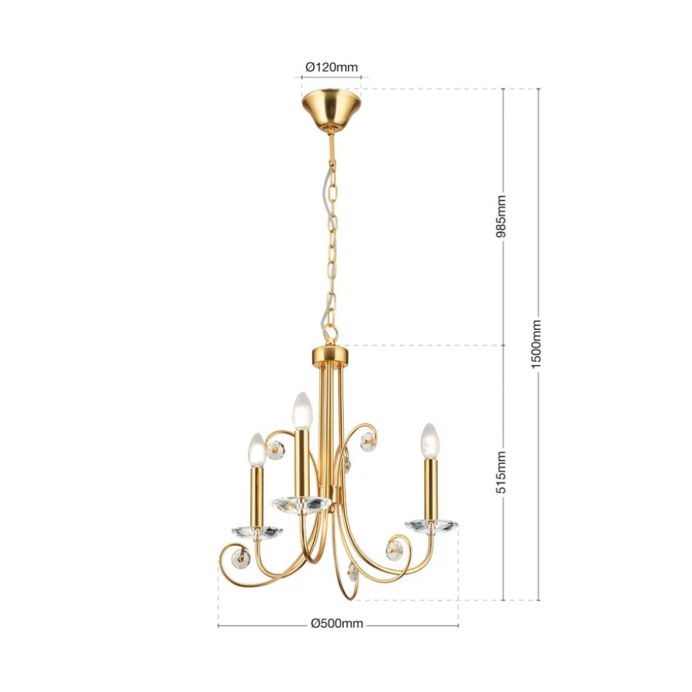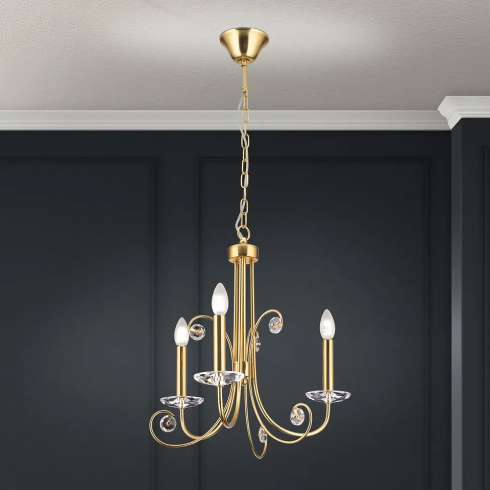 Kroonluchter Ariane, goudkleurig, Ø 50 cm, kristal, 3-lamps.