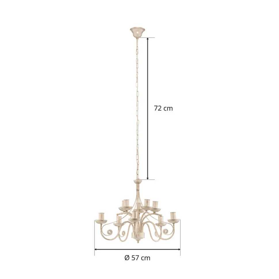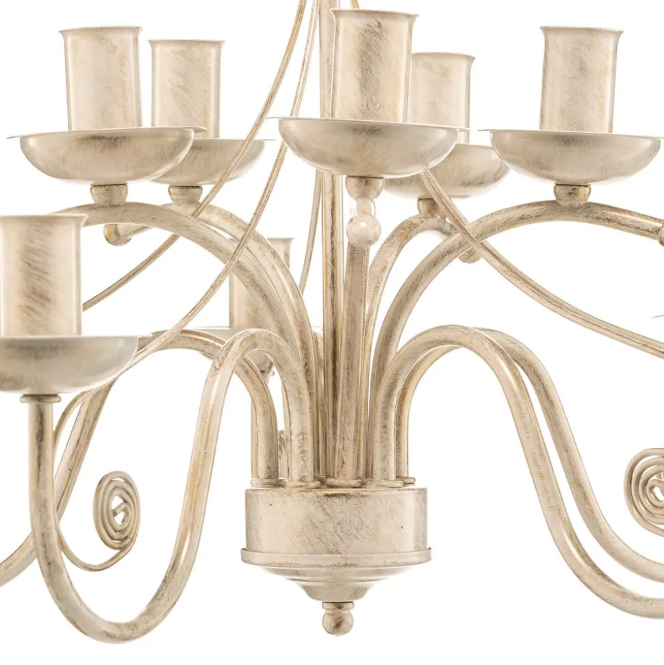 De stalen kroonluchter Ayleen maakt indruk door zijn antieke stijl en de harmonieuze kleurencombinatie van wit en goud. Met zijn tien lampen zorgt hij voor een gelijkmatige en sfeervolle verlichting in woon- en eetkamers. De hoogwaardige afwerking en het elegante design maken hem tot een blikvanger in elke ruimte.