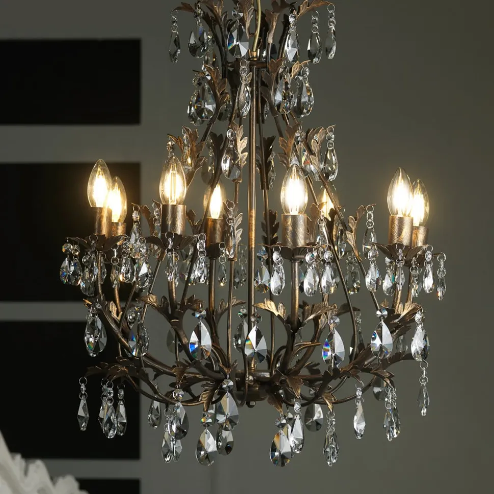 De kroonluchter Botte van metaal combineert Florentijnse stijl met hoogwaardige afwerking en geeft elke ruimte een bijzonder tintje. Deze 8-lamps kroonluchter is gemaakt van robuust metaal en versierd met edele kristallen elementen en straalt in een warme bronzen tint. Het kunstzinnige ontwerp en de zorgvuldige materiaalkeuze maken hem tot een hoogtepunt in woon- en eetkamers.