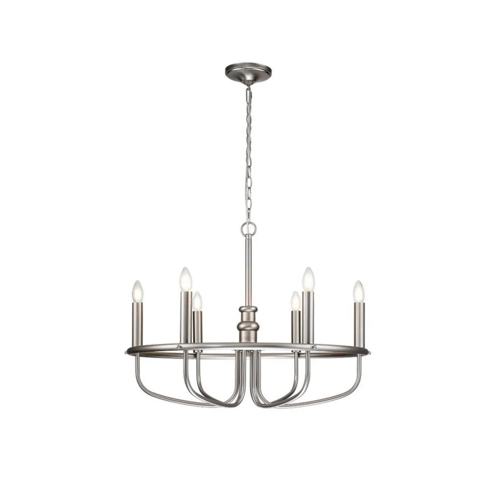 Kroonluchter Capitol Hill, 6-lamps, geborsteld nikkel