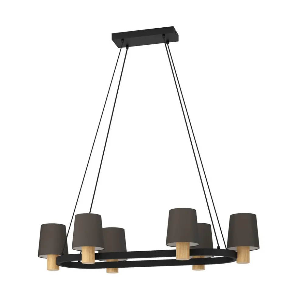 Kroonluchter Edale 6x stoffen kap cappuccino ovaal
