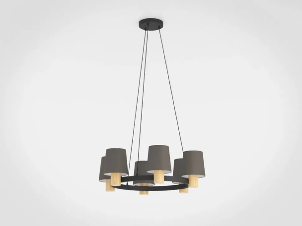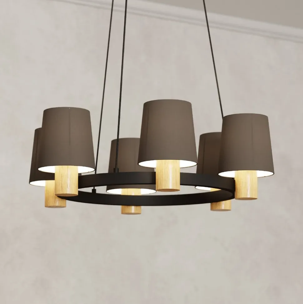 Kroonluchter Edale, 6x stoffen kap cappuccino rond