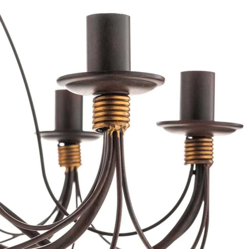 De kroonluchter Fiamma Marrone 8-lamps zonder kappen combineert rustieke charme met moderne functionaliteit. Deze kroonluchter is gemaakt van robuust ijzer en uitgevoerd in een aantrekkelijke donkerbruine en bronzen kleur, waardoor hij naadloos past in landelijke en rustieke interieurs. De 8-lamps constructie zorgt voor een gelijkmatige verlichting in woon-, keuken- en eetruimtes en creëert een warme, uitnodigende sfeer.