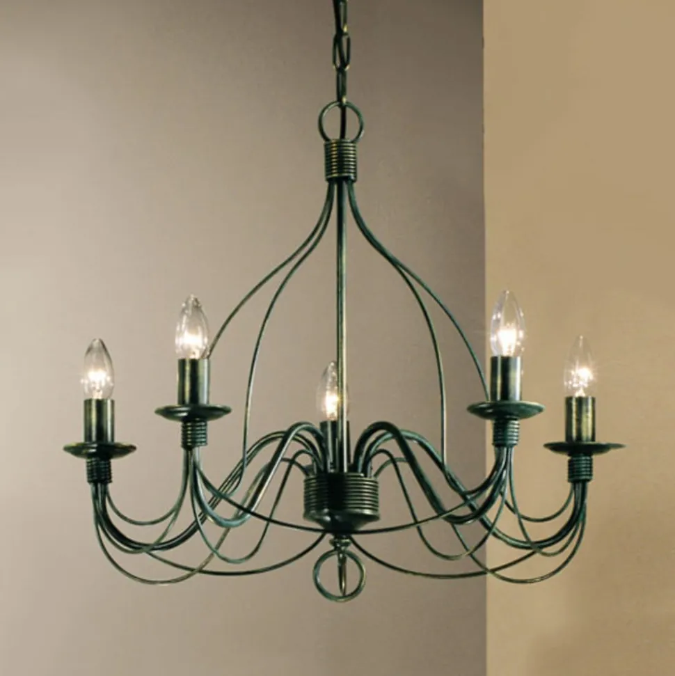 5-lichts kroonluchter in green antiqueDeze kroonluchter zorgt voor een goede verlichting met 5 lichtbronnen en maakt indruk met zijn nobele gebogen ontwerp. Door de exclusieve productie in Duitsland en Italië zijn de beste kwaliteit, uitstekende afwerking en korte levertijden gegarandeerd.