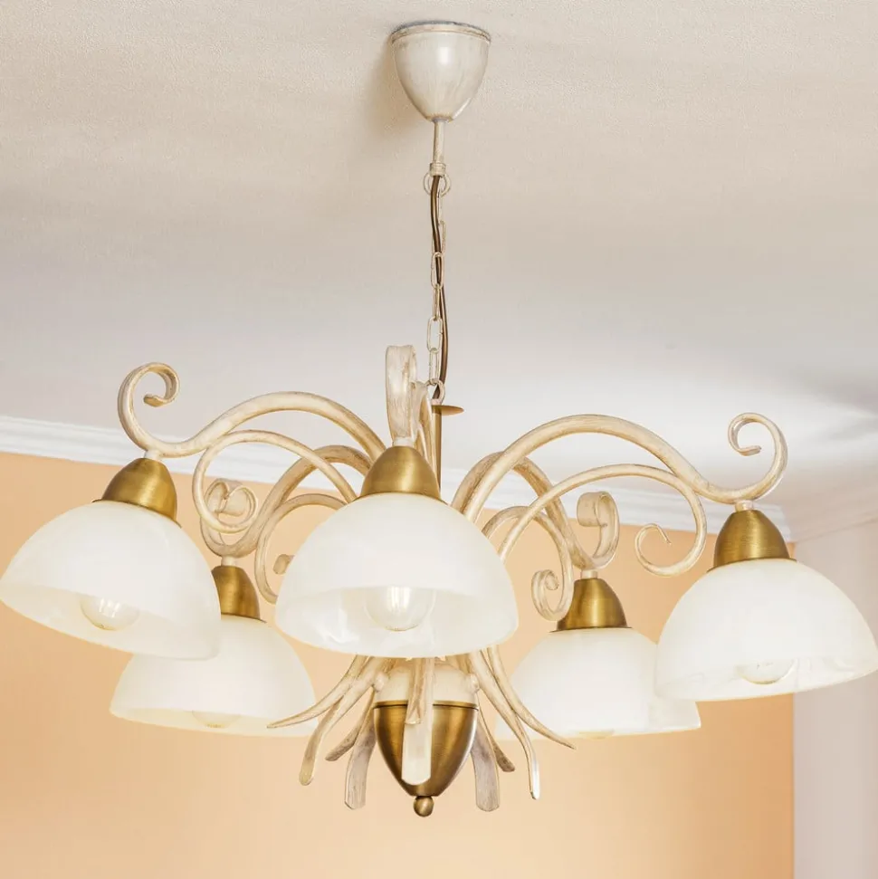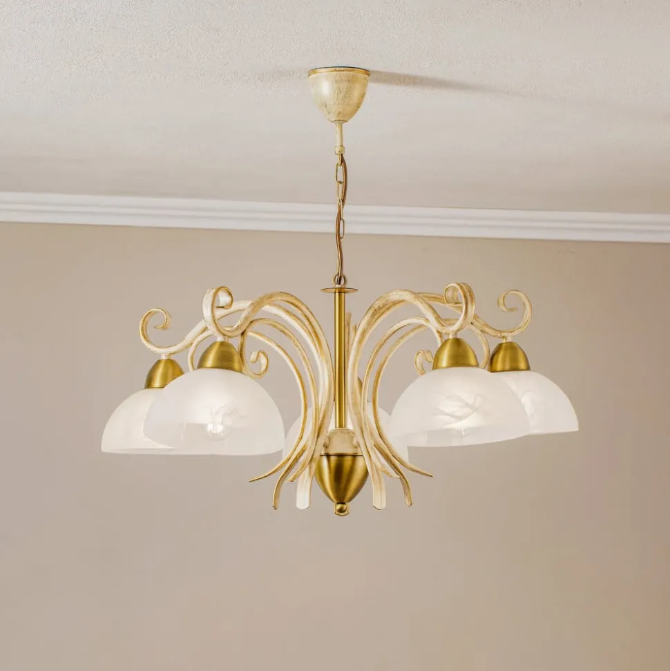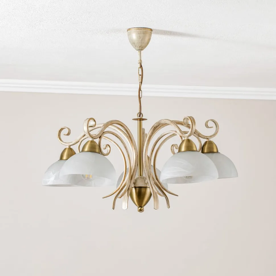 Kroonluchter Flora: elegantie en veelzijdigheid met vijf glazen kappen