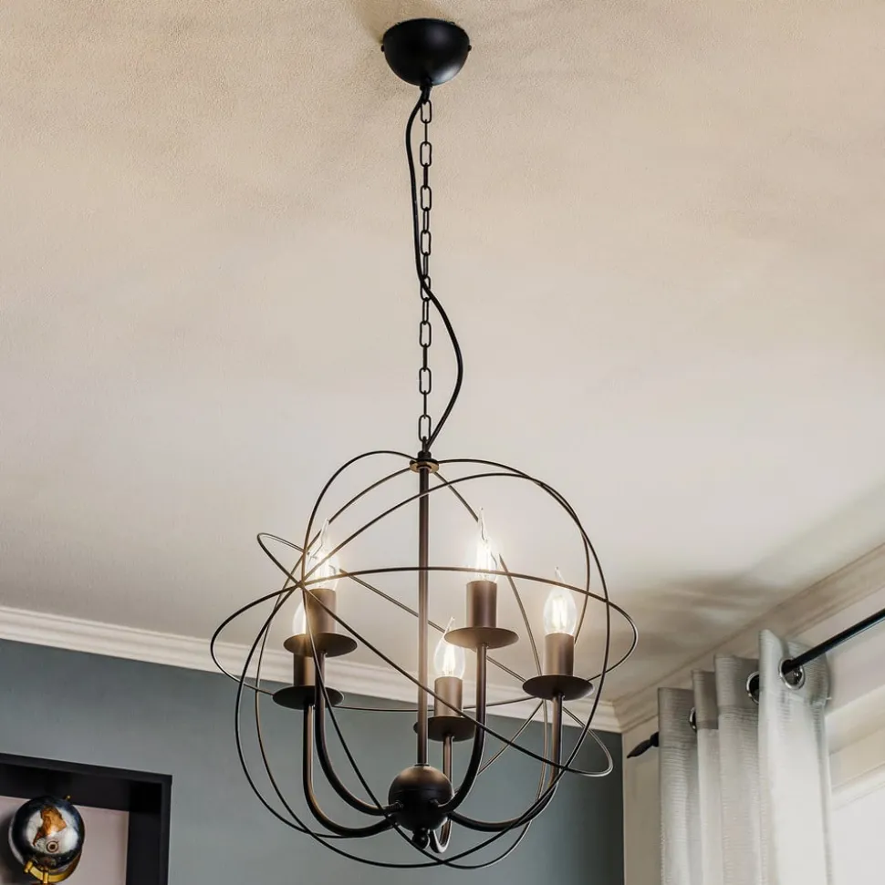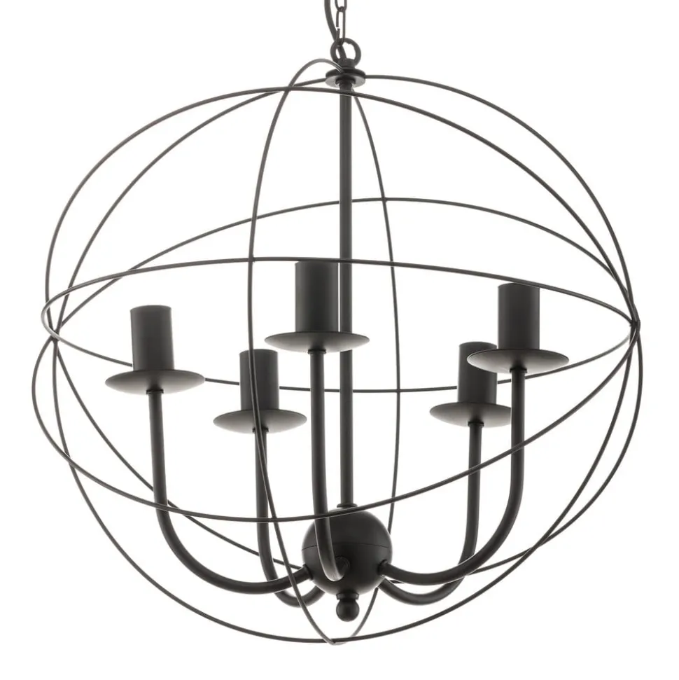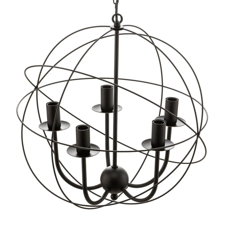 De kroonluchter Globe 5-lamps in zwart combineert modern design met functionele veelzijdigheid. Deze kroonluchter is gemaakt van hoogwaardig metaal en past naadloos in verschillende interieurconcepten, of het nu in de woonkamer, keuken of eetkamer is. De heldere, moderne stijl maakt hem tot een tijdloos hoogtepunt in elk interieur.