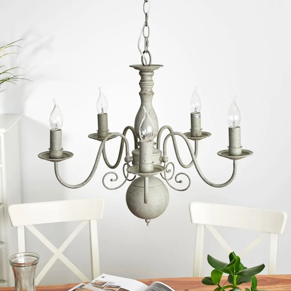 In eenvoudig grijs: opvallende kroonluchter’ Greythorn – met 5 lichtbronnen