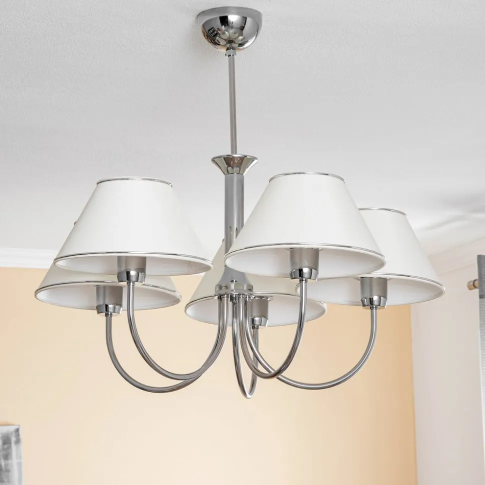 Kroonluchter London: elegantie en veelzijdigheid in chroom en crèmewit