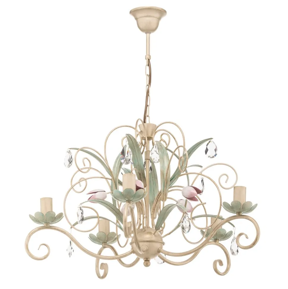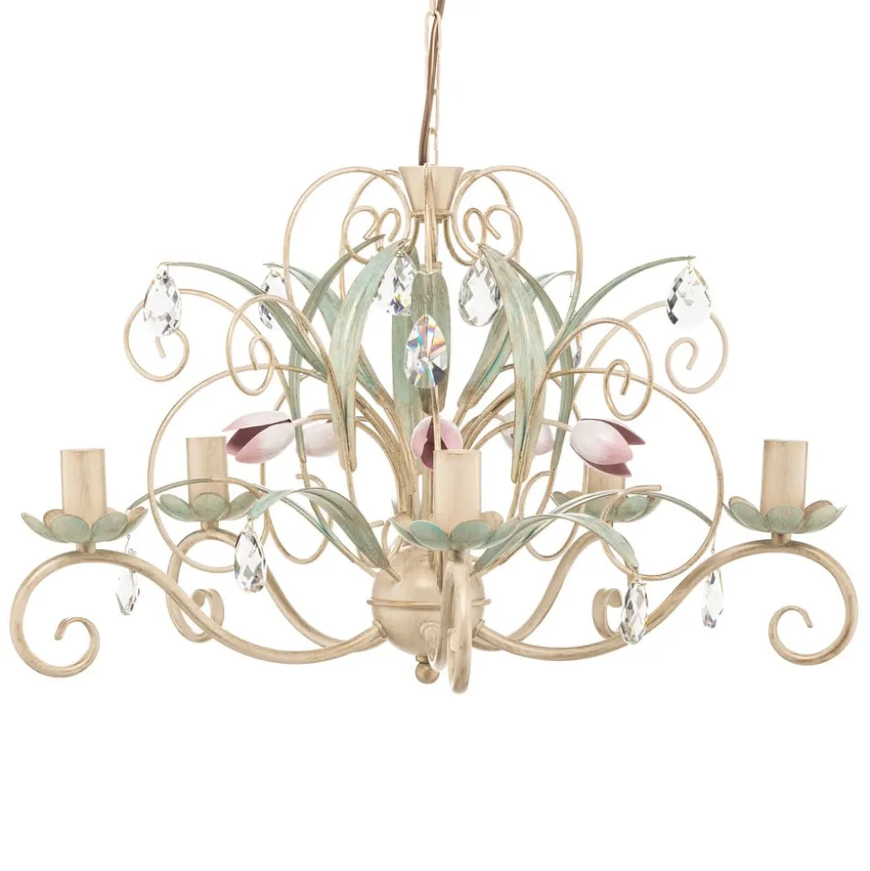 De kroonluchter Luce, 5-lamps, belichaamt de Florentijnse stijl en geeft elke ruimte een ongeëvenaarde elegantie. Deze kroonluchter is gemaakt van hoogwaardig metaal en verkrijgbaar in de kleuren wit, groen, roze en helder, waardoor hij harmonieus past in de woonkamer, keuken, hal en eetkamer. Het kunstzinnige ontwerp en de zorgvuldige afwerking maken hem tot een blikvanger die zowel klassieke als moderne interieurstijlen verrijkt.