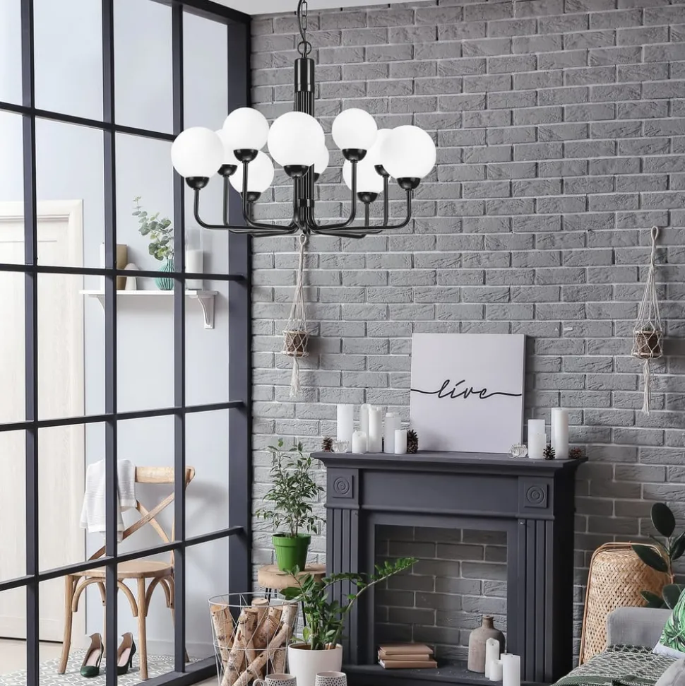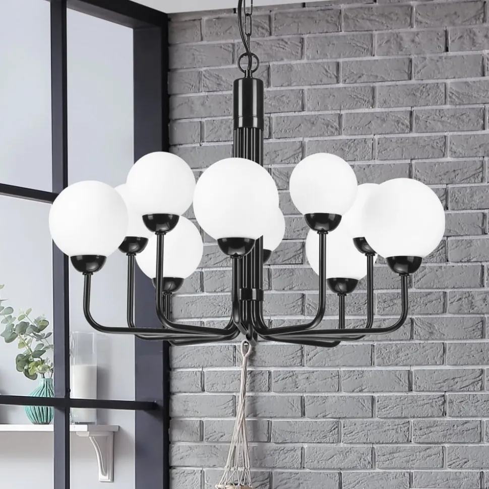 De kroonluchter Malou met zijn tien glazen kappen combineert modern design met hoogwaardige afwerking. Hij is gemaakt van robuust staal en edel glas en straalt een tijdloze elegantie uit die naadloos past in verschillende interieurconcepten. De zwarte kleur benadrukt zijn stijlvolle uitstraling en maakt hem tot een blikvanger in elke woonkamer, hal of eetkamer.