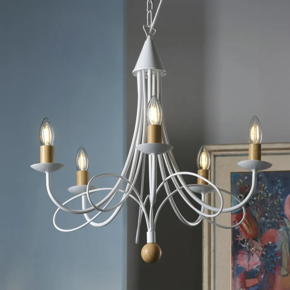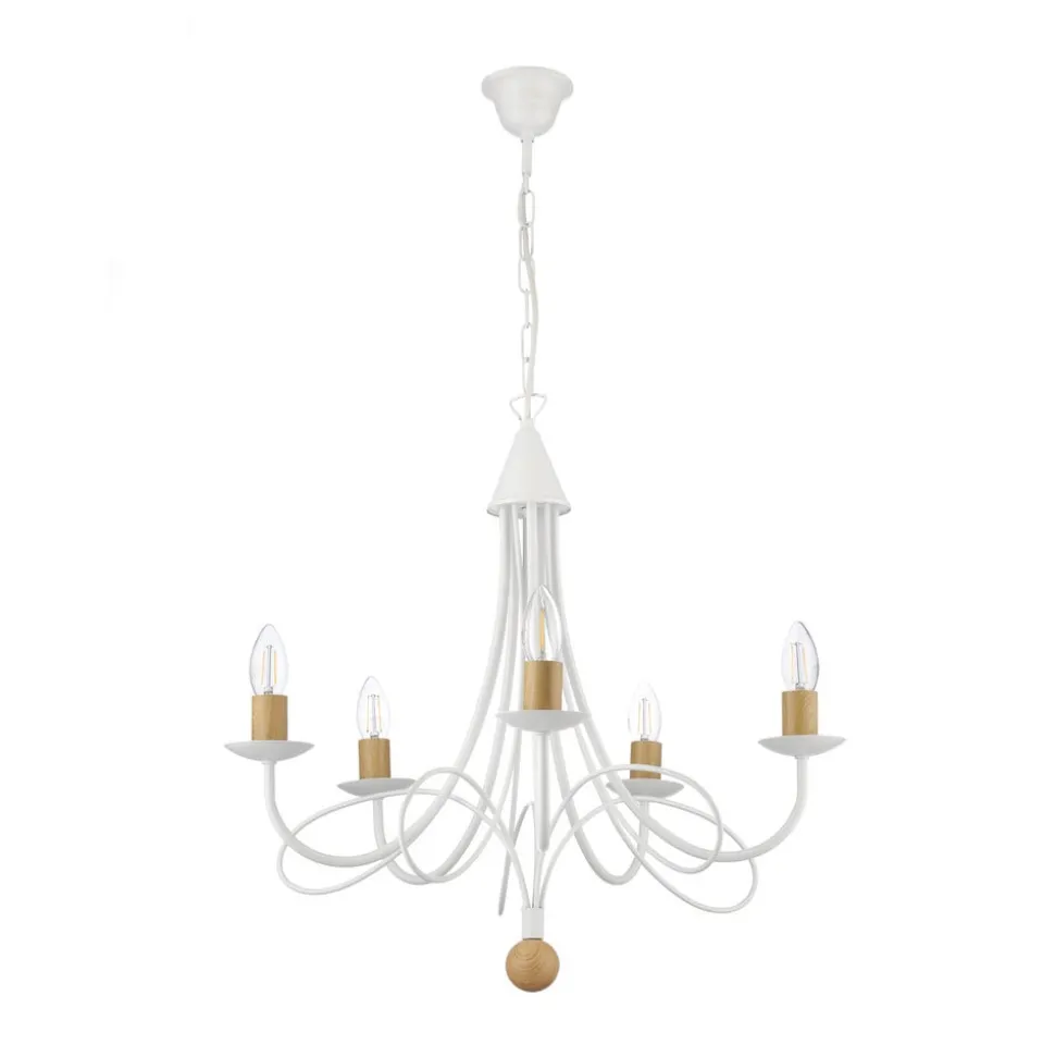 De kroonluchter Milvia, vervaardigd uit hoogwaardig metaal, combineert tijdloze elegantie met moderne veelzijdigheid. De combinatie van wit en houtkleurig design geeft elke ruimte een warme en uitnodigende sfeer. Deze kroonluchter is bijzonder geschikt voor eet- en woonkamers, legt stijlvolle accenten en wordt een blikvanger in elk interieur.