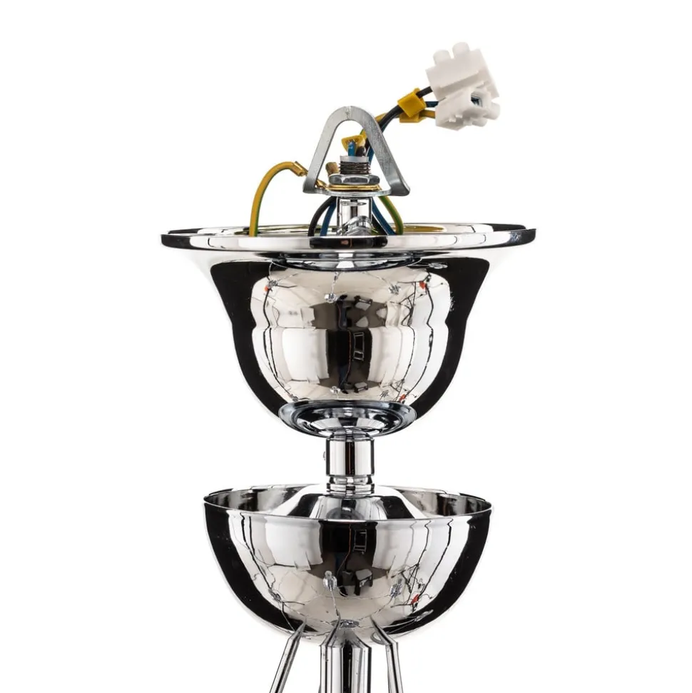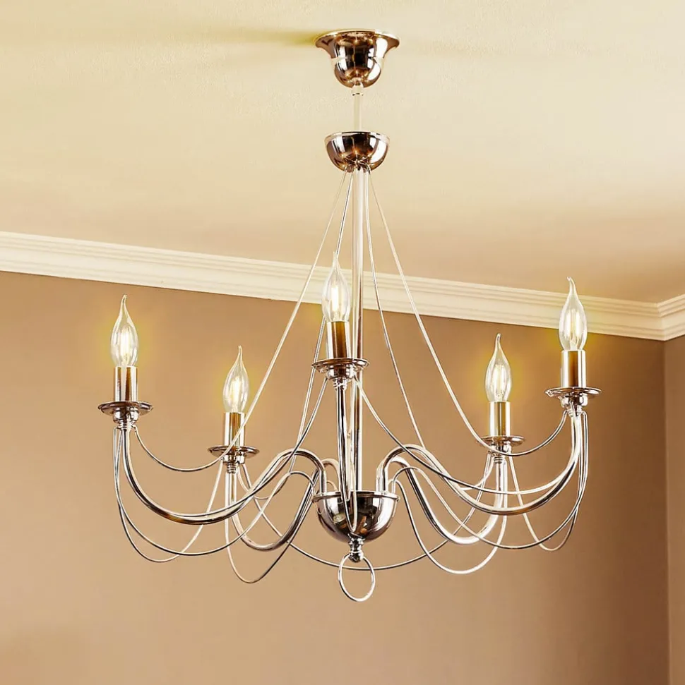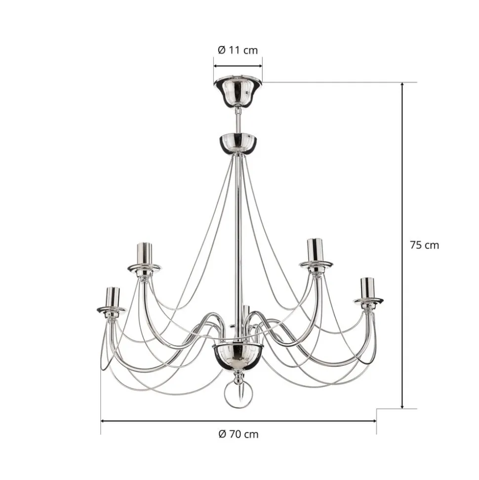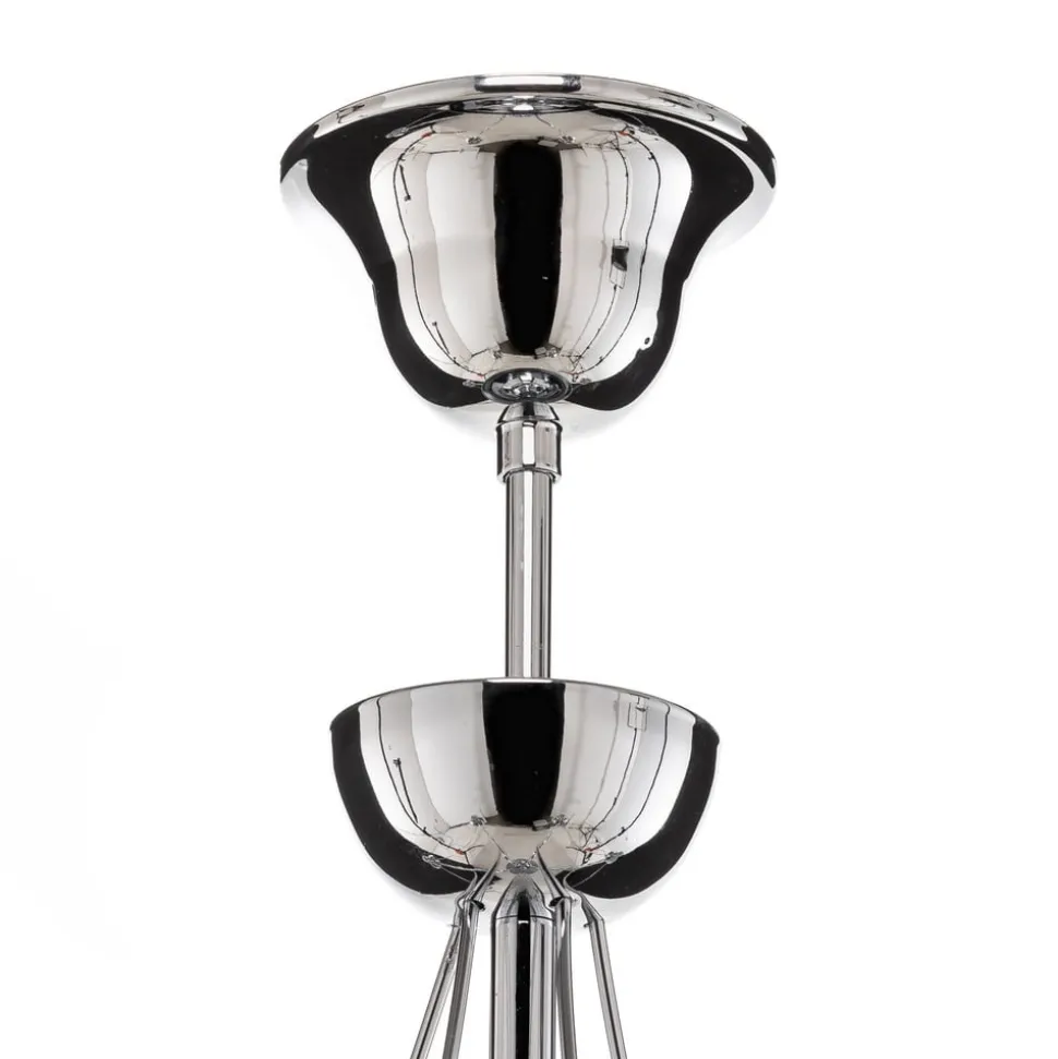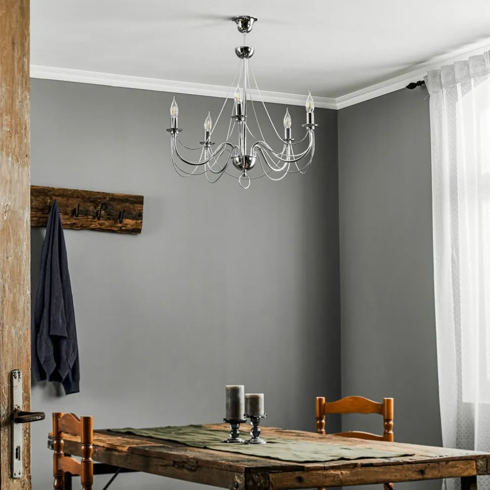 De kroonluchter Retro maakt indruk door zijn tijdloze design en de hoogwaardige afwerking van robuust staal. De elegante chroomkleur geeft elke ruimte een bijzonder tintje en past perfect bij verschillende interieurstijlen. Met vijf lichtbronnen zorgt deze kroonluchter voor een gelijkmatige en aangename verlichting, die zowel in de woonkamer als in de eetkamer een uitnodigende sfeer creëert.