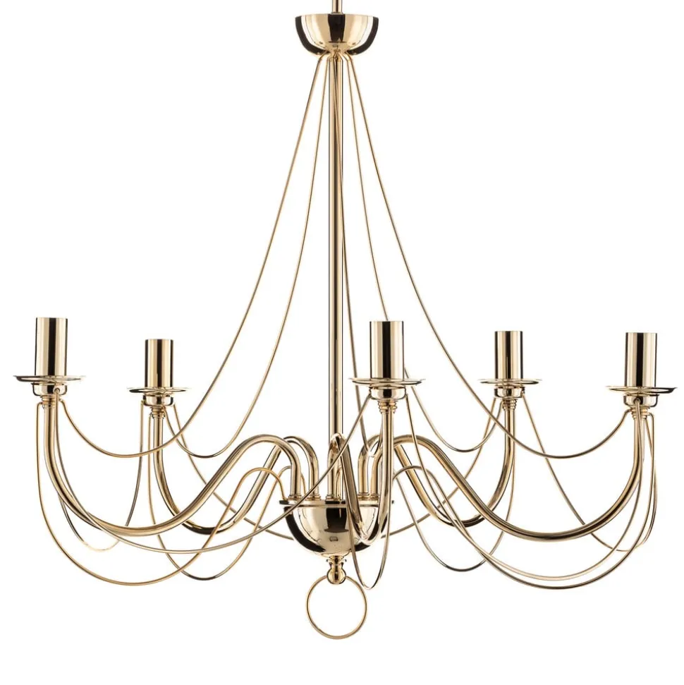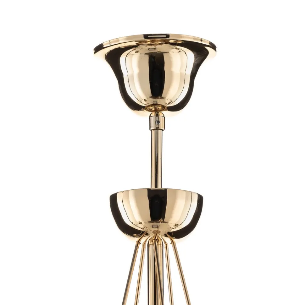 De kroonluchter Retro, met vijf lampen, valt op door zijn elegante gouden kleur en het hoogwaardige staal. Dit tijdloze ontwerp past naadloos in de woonkamer en eetkamer en geeft elke ruimte een luxe uitstraling. De zorgvuldig ontworpen details en de robuuste constructie maken deze kroonluchter tot een duurzaam hoogtepunt in het interieur.