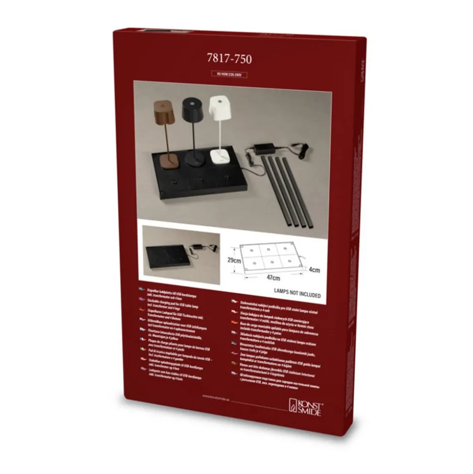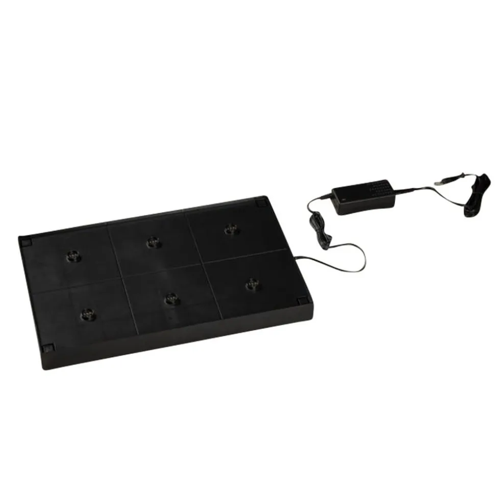Met behulp van dit laadstation kunnen maximaal zes Nice LED-batterijlampjes tegelijk worden opgeladen. Met de bijgeleverde tafelpoten kan het laadstation op een handige hoogte worden gebracht, zodat de batterijlampjes er snel en gemakkelijk op kunnen worden opgeladen.