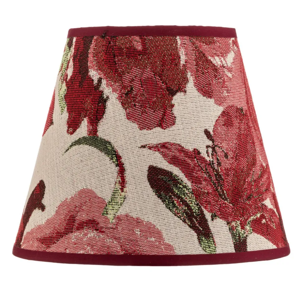 De lampenkap Sofia combineert traditioneel vakmanschap met een aantrekkelijk bloemmotief. Hij is gemaakt van hoogwaardig textiel en valt op door een levendig bloemenpatroon in een intense rode tint. Deze combinatie van materiaal en kleur geeft elke ruimte een bijzondere sfeer en zorgt voor stijlvolle accenten.