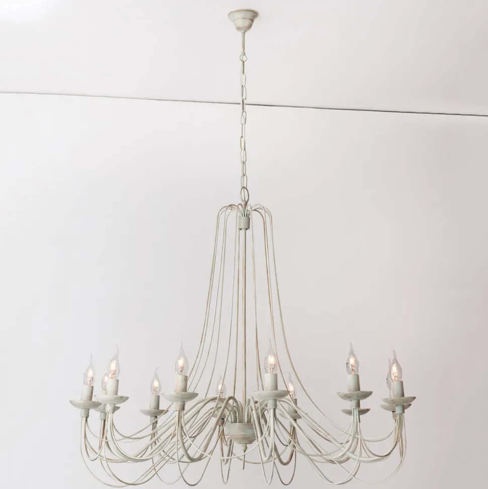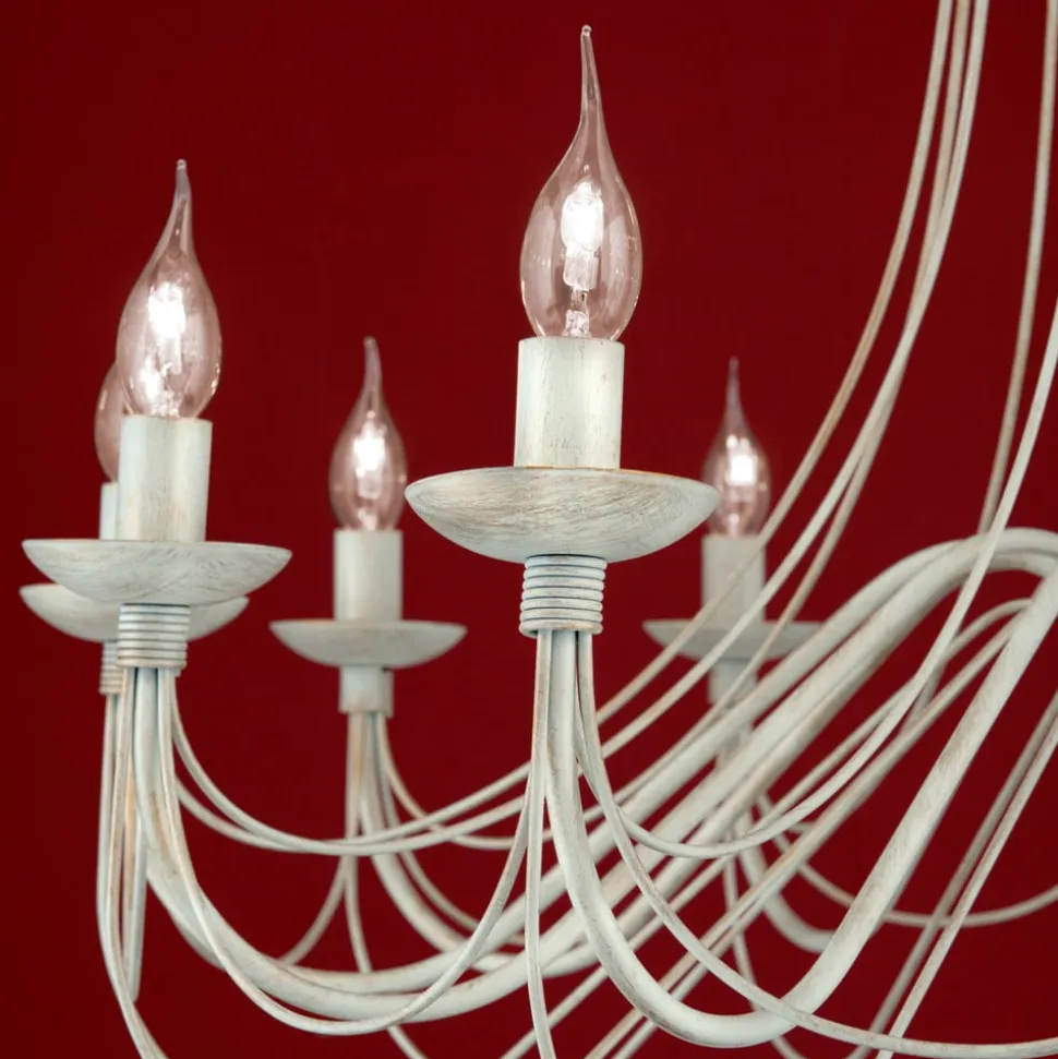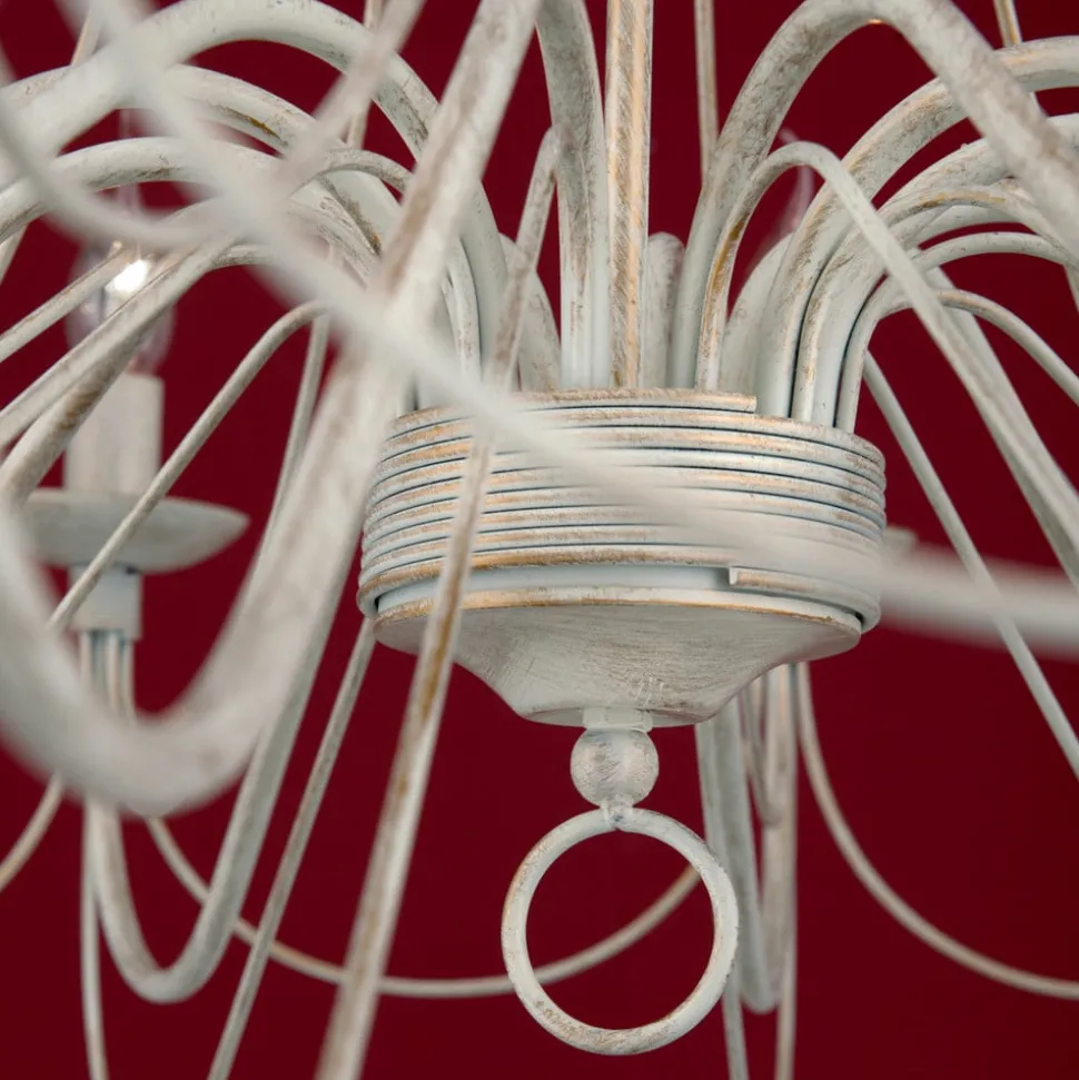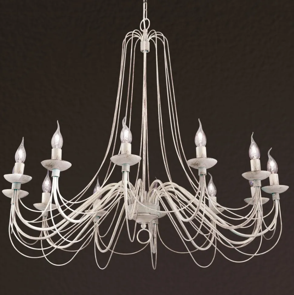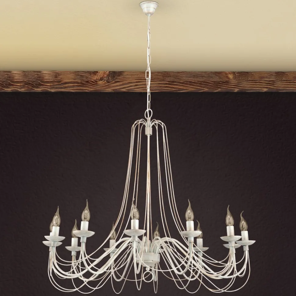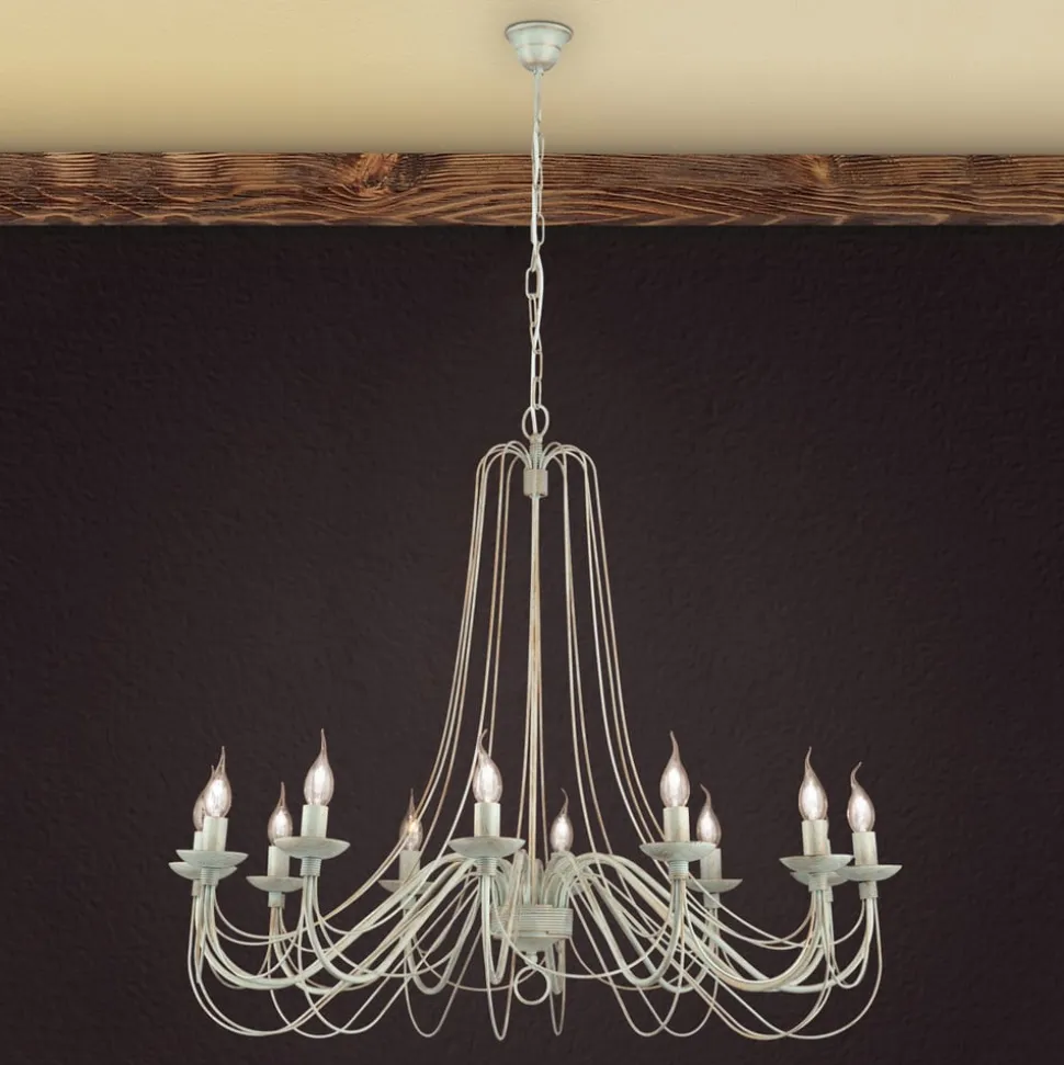 Sfeervol licht verspreidt de 12-lamps kroonluchter Antonina die aan een rustieke ketting aan het plafond hangt. Hij heeft een heldere ivoortoon en is ondanks zijn filigranen uiterlijk zeer aanwezig. het landelijk-rustieke design kan uitstekend geïntegreerd worden in een omgeving in landelijke stijl. Antonina verspreidt een bijzonder behaaglijke lichtsfeer als windstoot-kaarslampen als lichtbron gebruikt worden. Lichtbron niet inclusief – via accessoires verkrijgbaar.
