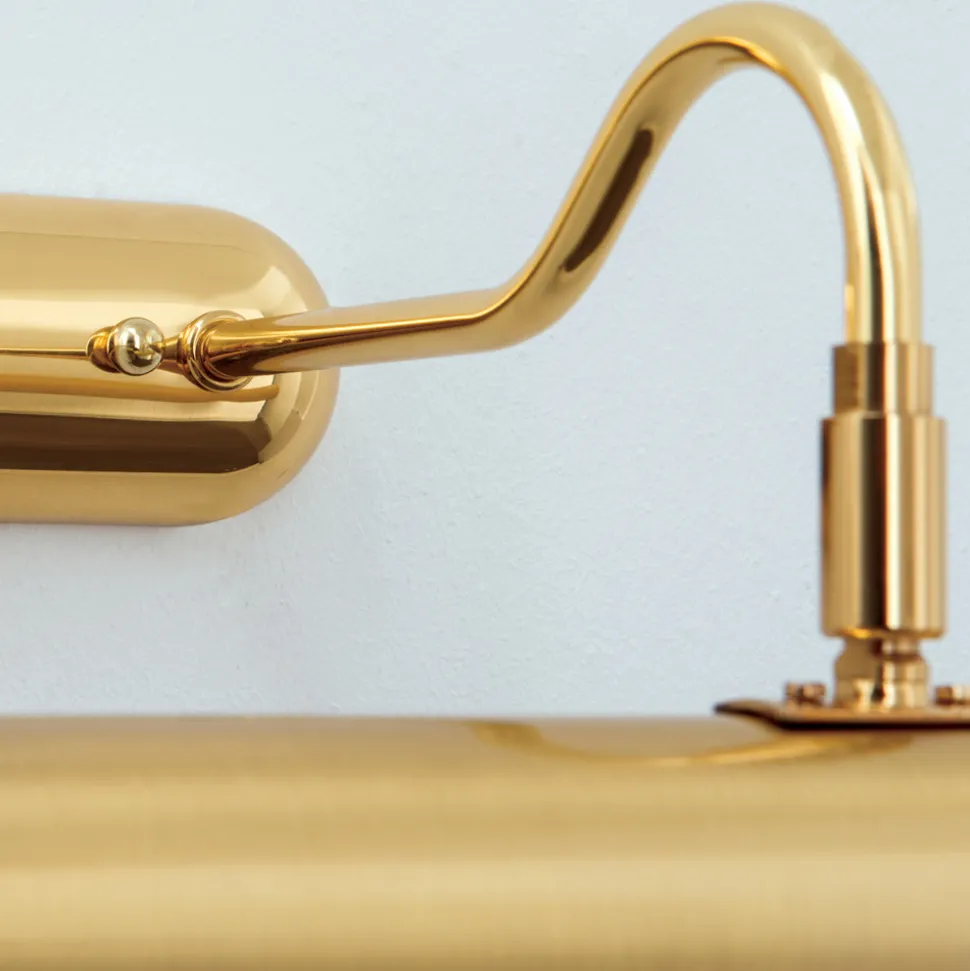 De schilderijverlichting Lariga werd volledig van metaal gemaakt waarvan het oppervlak een matte messingtoon heeft. De finishing touch komt door polijsting met de hand. Door de lengte van 70 cm zorgt ze niet enkel voor de perfecte verlichting van kunstwerken aan de muur maar geeft ze ook een behaaglijke omgevingsverlichting die met zekerheid elke kamer gewenst is. Lariga past door haar eenvoudige elegantie bij vele wooninrichtingen.