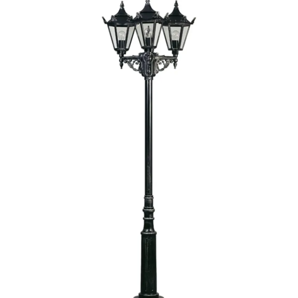 Deze lantaarnpaal is met oog voor detail gemaakt en vormt met zijn artistieke metalen versiering aan paal en lantaarn een indrukwekkende verschijning.