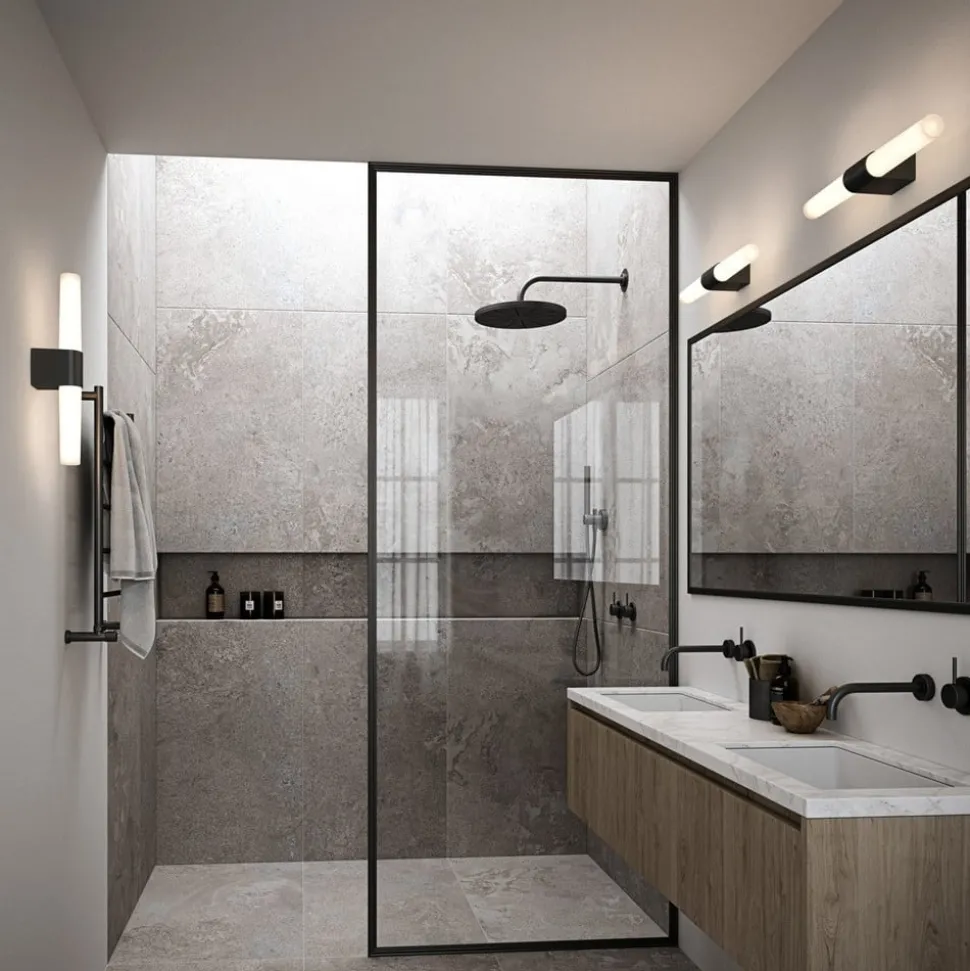 Helva Double Basic past in veel moderne badkamermeubels dankzij de neutrale kleurstelling en het eigentijdse design. De LED-wandlamp is ook veelzijdig inzetbaar bij de montage: hij kan horizontaal of verticaal aan de wand worden gemonteerd en wordt ook geleverd met een beugel voor gebruik als opbouw-meubelverlichting. Het warme witte licht dat door de matte hoezen wordt uitgestraald, heeft een aangenaam effect en presenteert de kleuren van de objecten in de ruimte zeer realistisch dankzij CRI 90.