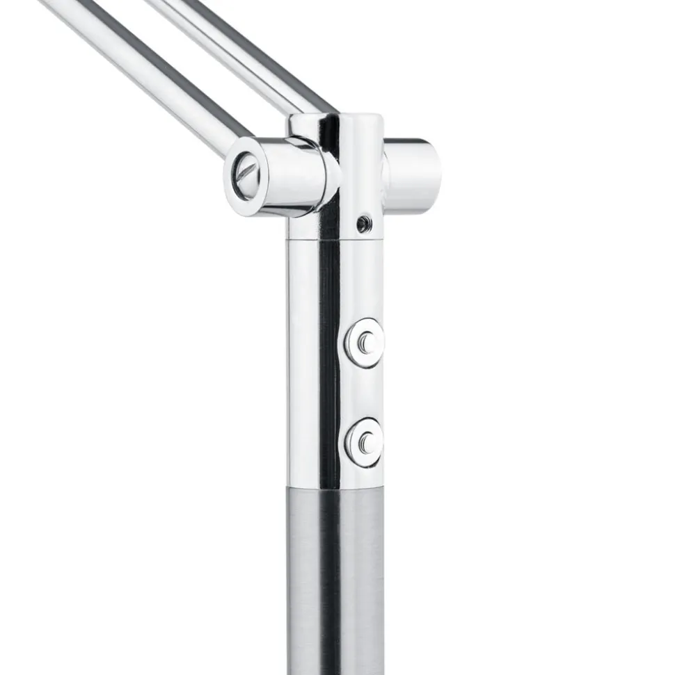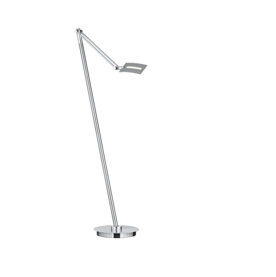 Evolo LED vloerlamp met CCT en dimtechnologie Evolo is een vloerlamp met een modern design die perfect is als leeslamp in de woonkamer. De vrijdragende arm met twee gewrichten maakt een flexibele instelling van de armatuurkop mogelijk, waaruit het licht aan één kant plat en aan de achterkant door een smalle lichtspleet naar buiten komt. Met twee drukknoppen op het frame kan de lichtkleur worden aangepast van warm wit licht met 2.700 K tot daglicht met 6.000 K en kan het licht traploos worden gedimd.