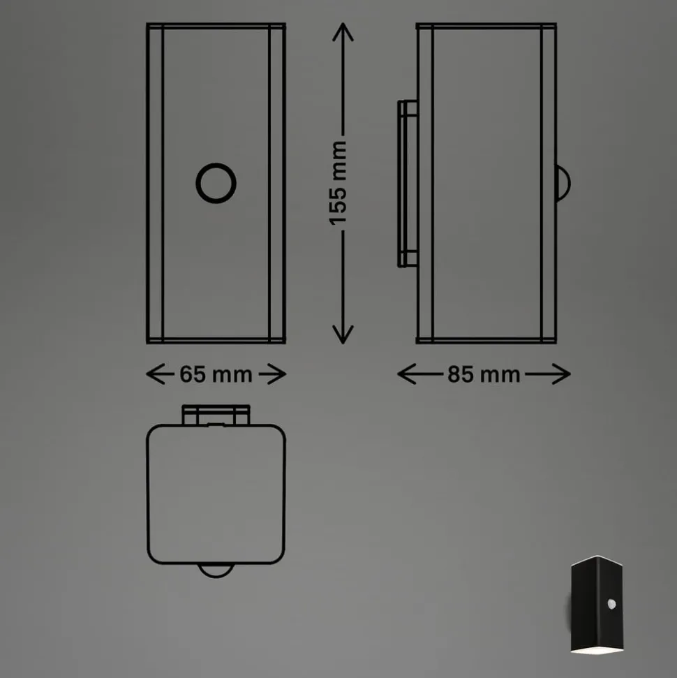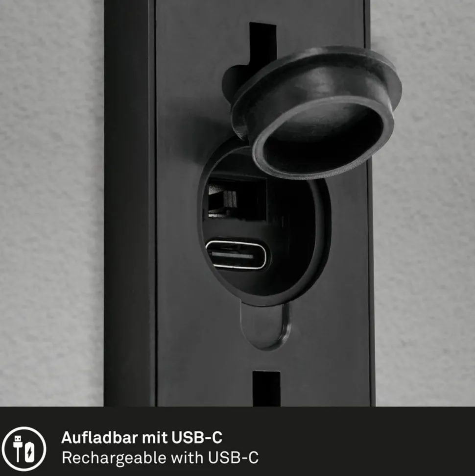Kubusvormige LED buitenwandlamp met oplaadbare batterij en sensorbediening – spot naar boven en beneden Deze LED buitenwandlamp van kunststof in de vorm van een kubus is een bijzonder praktische spot naar boven en beneden voor buiten. Ze is uitgerust met een oplaadbare batterij, zodat er geen vaste stroomaansluiting nodig is. Schakelen gaat automatisch met de geïntegreerde bewegings- en schemersensor. Het licht wordt alleen geactiveerd in het donker zodra er mensen actief zijn binnen een afstand van maximaal 5 meter; het licht blijft 20 seconden aan. Handmatige bediening via een schakelaar op de lamp is ook mogelijk – Beschermingsgraad: IP44 – Inclusief USB-C oplaadkabel – Kan van de muurbeugel worden verwijderd voor opladen in droge binnenruimtes – Schemeringsdrempel instelbaar: 5 tot 25 lx – Oplaadtijd 8,5 uur