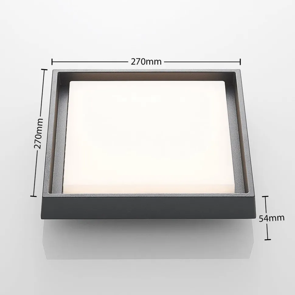 Hoekige LED buiten plafondlamp Birta in donkergrijs, IP54