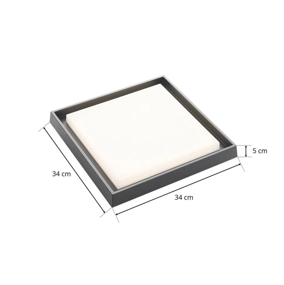 In het vierkante montuur uit gegoten aluminium bevindt zich een even hoekige pc-diffuser, wat resulteert in een breukvaste en krasbestendige armatuur, die bestand is tegen alle weersomstandigheden. De platte diffuser geeft het sterke licht gelijkmatig af, zodat de buitenruimte optimaal wordt verlicht. Door het vlakke ontwerp kan de plafondlamp bovendien ook ruimtebesparend worden gebruikt op plaatsen die ruimtelijk beperkt zijn.