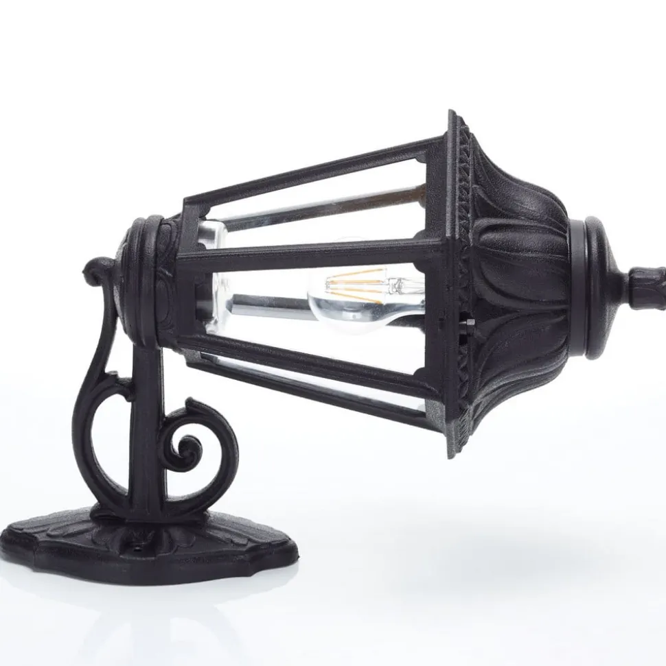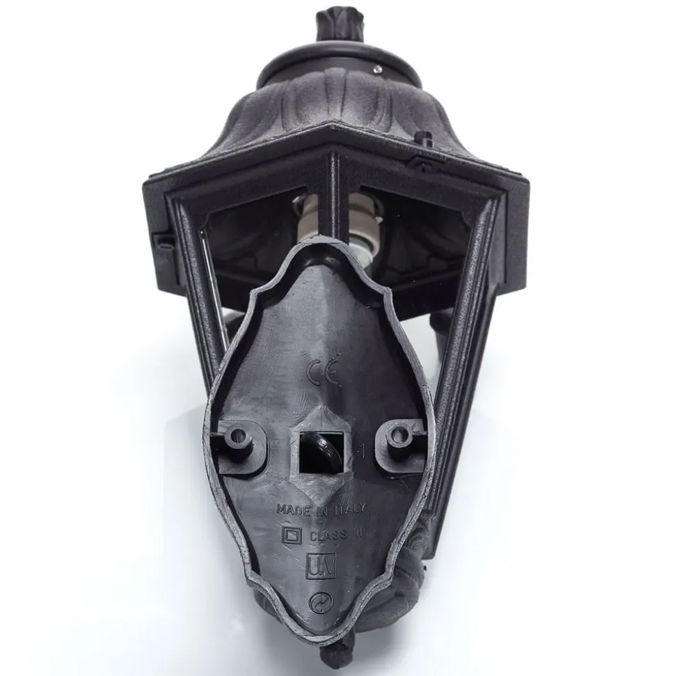 Zwarte LED-buitenwandlamp Bisso Anna in een klassieke lookDe Bisso Anna-buitenwandlamp, ontworpen als lantaarn, kan perfect worden gecombineerd met de meest uiteenlopende woningontwerpen in een klassieke stijl en zorgt dankzij de nieuwste LED-lichttechnologie voor een aangename en ook energiezuinige buitenverlichting. Het armatuur van hars met een heldere kunststof kap is slagvast, UV-bestendig en bestand tegen nog zwaardere weersomstandigheden. Dankzij de zeewaterbestendige afwerking is de LED buitenwandlamp Bisso Anna ook geschikt voor gebruik op eigendommen in de buurt van de zee. Bisso Anna kan worden gemonteerd met de lantaarn naar beneden of naar boven gericht.De geplaatste LED lichtbron in kooldraad-look, die is uitgerust met een E27 lampvoet en indien nodig kan worden vervangen, heeft een bijzonder decoratief effect. Het verspreidt een zacht, warm wit licht en zorgt voor een zeer sfeervolle sfeerverlichting, bijvoorbeeld in de buurt van de voordeur.- Montage zowel naar boven als naar beneden mogelijk- Roest- en corrosiebestendig- Gemaakt in Italië